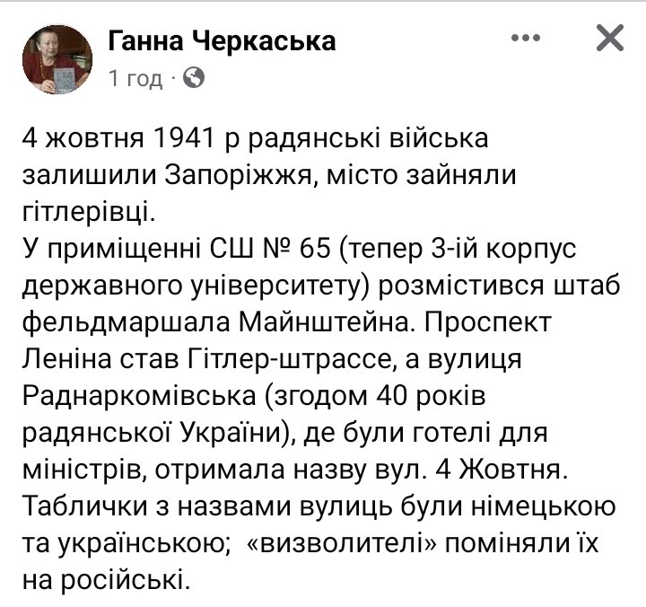 4 жовтня 1941 р радянські війська залишили Запоріжжя, місто зайняли гітлерівці.