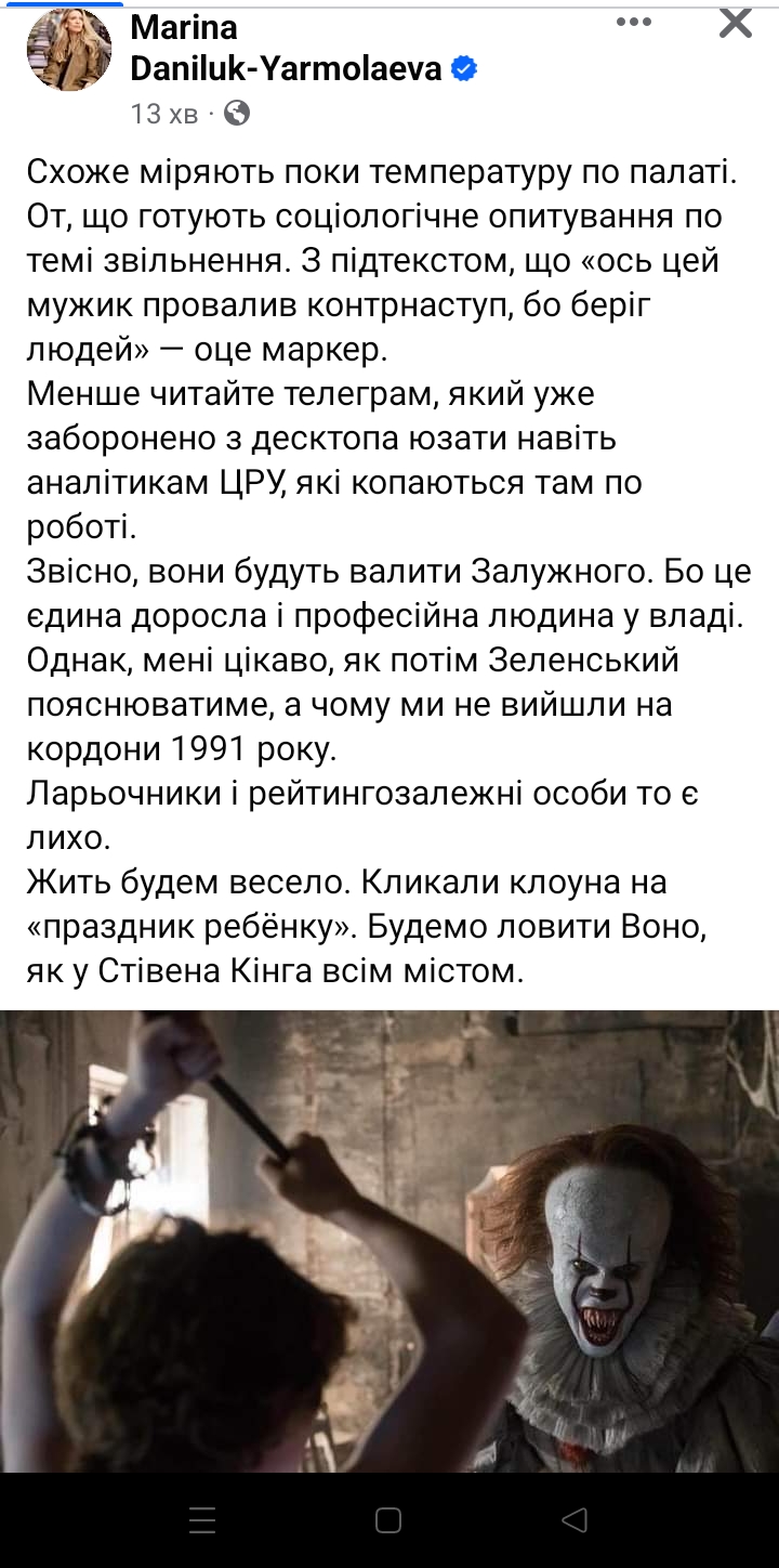 Звісно, вони будуть валити Залужного. Бо це єдина доросла і професійна людина у владі.