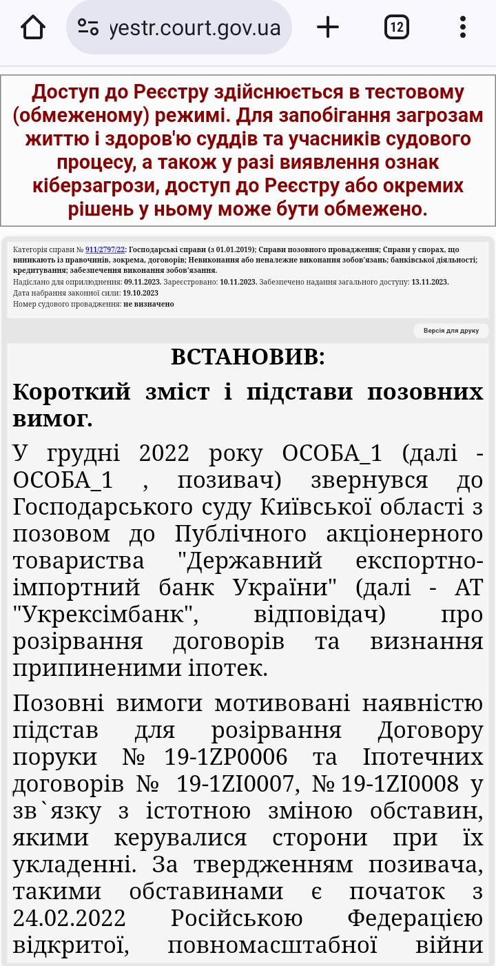 Суд каже - маячня, у країні війна з 14 року, ти знав на що йшов, коли підписував при zeлемському ці папіри? Знав. Ну от. Значить усвідомлював ризики.