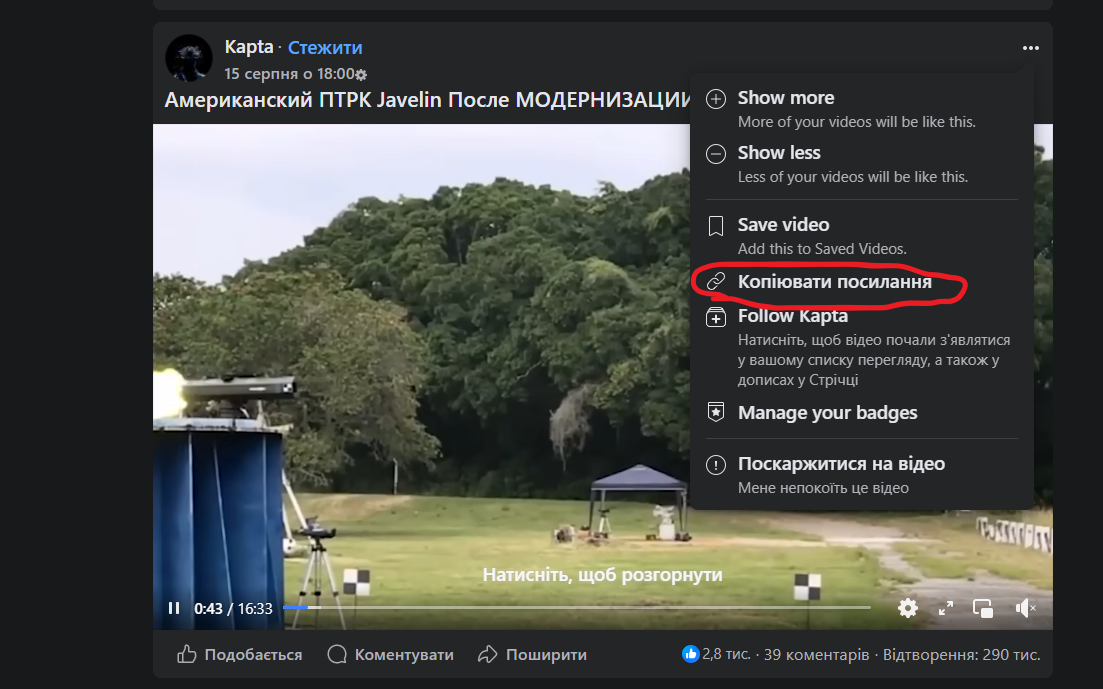 Нажаль ніяк. Райберт недозволяє вставити відос з ФБ Тож варіантів два : 1. Безгеморний. Просто кинути сюди посилання на відос : 2. Танці з бубном. Скачати відос через сторонній сайт: https://www.google.com/search?q=ска...DAIgGAZAGCpIHAzMuOaAHtFE&sclient=gws-wiz-serp (вставляємо посилання на відео і качємо) , залити відос на ютуб і потім вже вставляти тут.