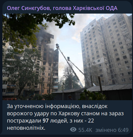 Жінка вчора поїхала до знайомих, біля к-т "Київ". Влучило кабом поруч у парк. Дім цілий, вікна ні. Навіть вентиляційну решітку у кухні видуло. Пів години сиділа у закутку, чекала на другий прильот. Нарешті вийшла у під'їзд, разом з сусідами прибирали скло, потім у квартирі. P.S.Закатом у БНР задоволений!