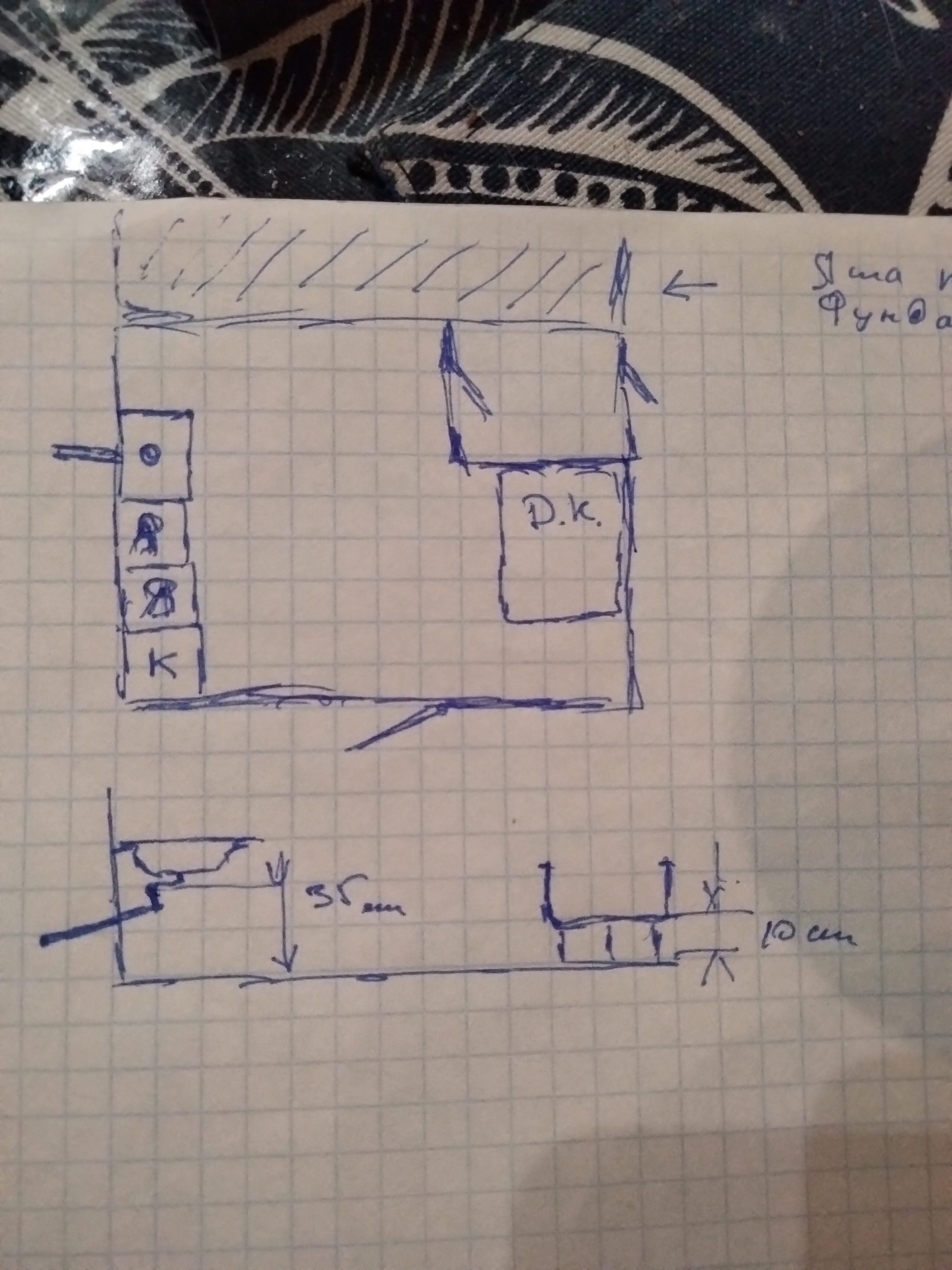 Якось так)) ДК - душова Кабіна К - котел Я - кухонна мебля Прямокутник з точкою - раковина, та труба що стирчить назовні. В оту трубу планував встромити отаке Та в неї напхати раковину, стиралку та душеву кабіну. Раковина зверху, зі стиралки помпа воду випхає, а от з душової трошки підняти треба.