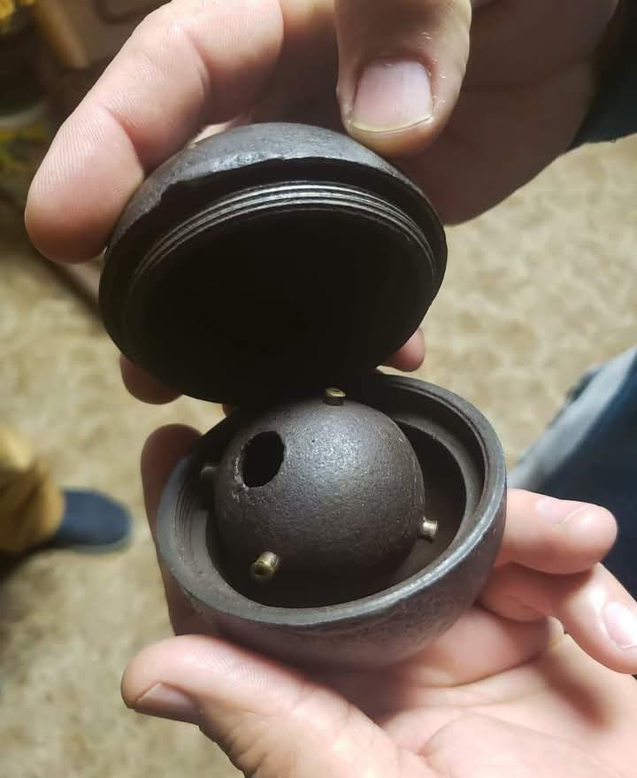 А доречі , дуже цікаво продумана конструкція, хоч і майже з середини ХІХ сторіччя! Капсюлі-детонатори розташовані таким чином, що яким би боком не вдарила граната об землю, миттєвий вибух практично гарантовано. Але, мабуть і випадково впустити її поруч із собою було рівнтзначно смертному вироку. Скоріше за все, ці капсюлі вставляли перед самим вживанням гранати. Правда, розміри її якісь маленькі??