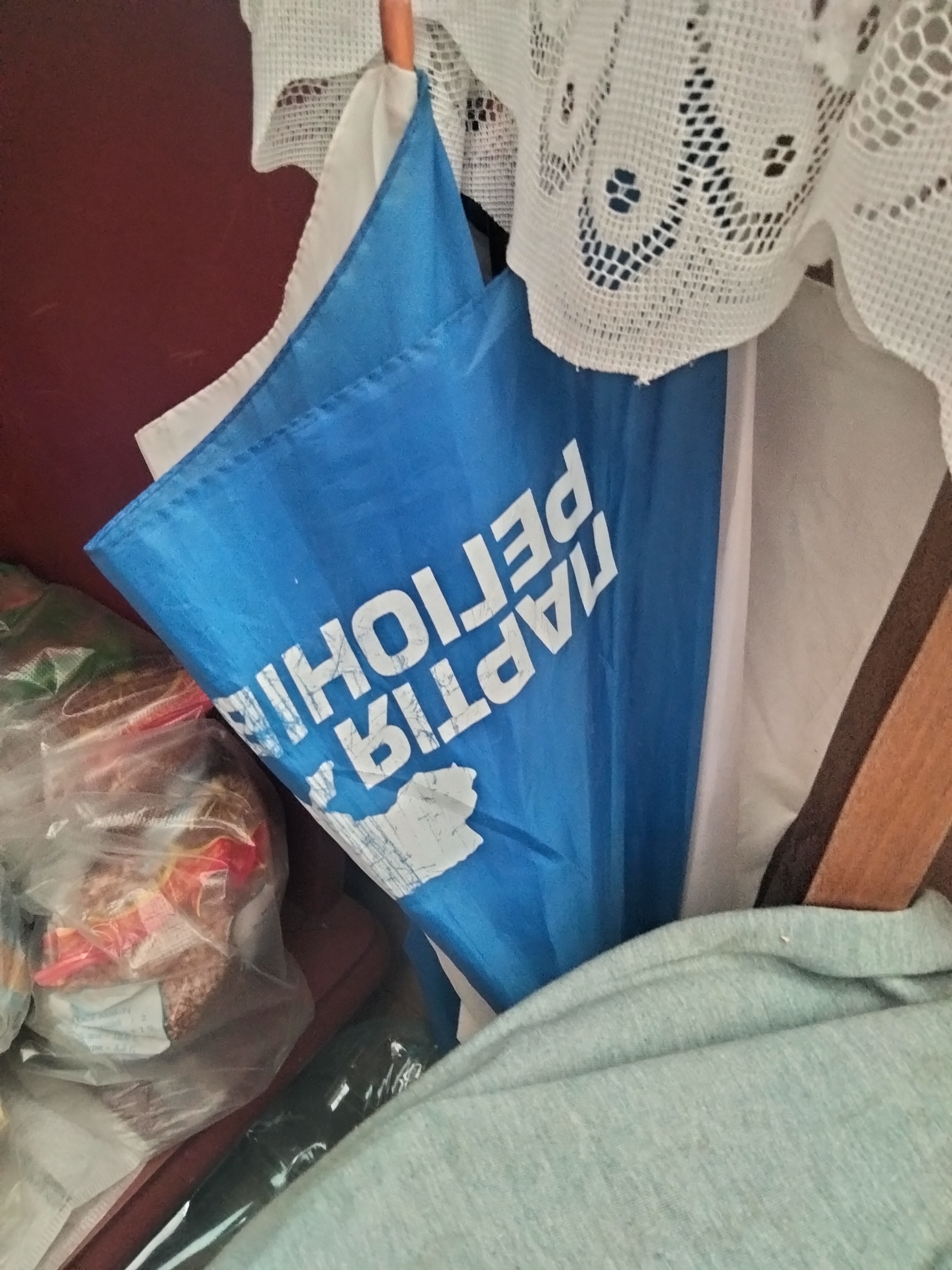 Так, якось вже і посилають корабель не дуже впевнено і цілеспрямовано, і парасолька не дуже патріотична.... Якийсь певний сум це дійсно викликає... А можливо, і нічого особистого немає в тій парасольці ''біло-блакитній'' . Просто валяється про всяк випадок - а раптом злива! Хоча якось дуже нав'язливо б'є у очі той ''рыгианальный" напис. Недобрі асоціації нагадує ... Таке враження, що навмисно саме написом наперед поставлено. Де-кому треба уважніше придивитися до тих поштарів