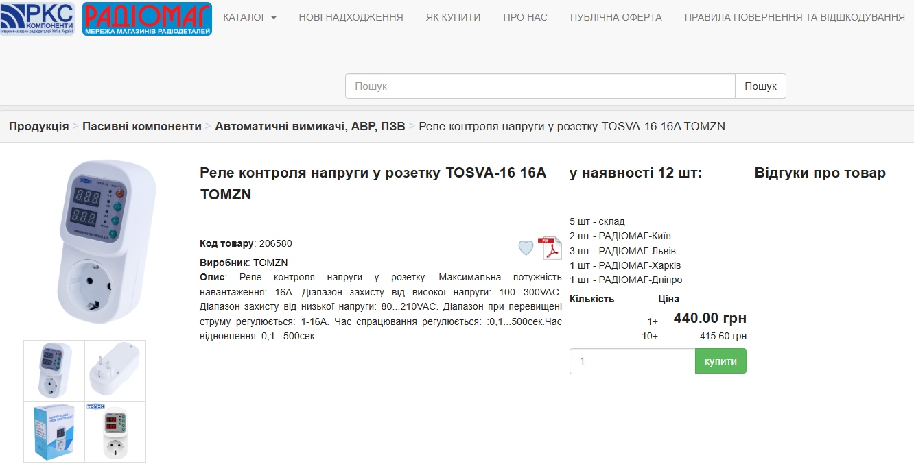 Мені прислали томзн за 530гр в резетку, і на 40а за 390гр. Дуже швидко і на укрпошту післяплатою. З пром.уа.