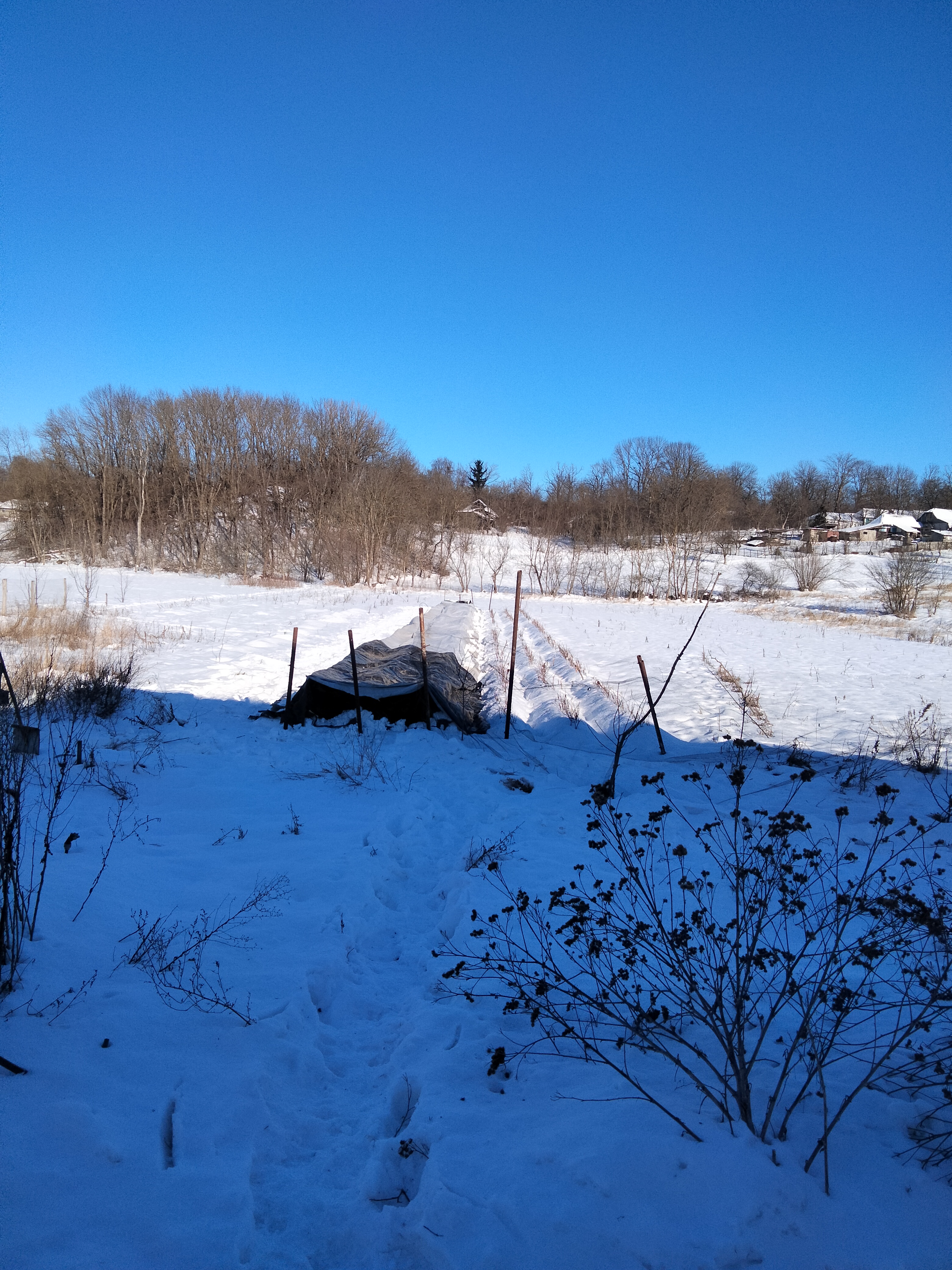 Привітався)) Вчора з коханою вкривав перед морозяками школку. Але це скоріше за все мертвому припарка, бо морози у - 17...-19 скоріш за все безповоротно пошкодили точку щеплення. Чатжпт каже, що ймовірно втрати вже складають 50..80%. Тож таке. Минуло річні саджанці, що встиг висадити на постійні місця прикриті снігом, тож морозяки їм не страшні.. Чекаємо на весну, подивимось, що з цього всього вийде...