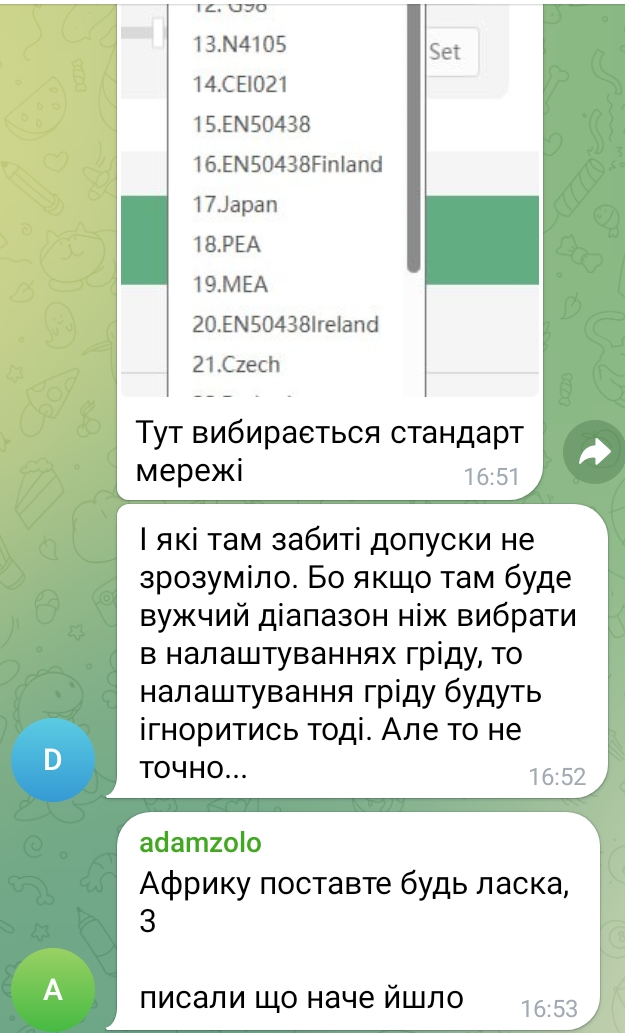 Людина намагається налаштувати інвертор Luxpower GEN, щоб він працював від мережі 170 в. І шо ми бачимо? Це можливо, але стандарт мережі треба вибрати для Африки. 7 років вистачило пізделенському, щоб перетворити європейську країну на африканську.