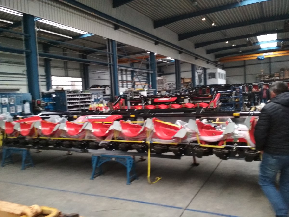Завод Geringhoff. Собирают жатки для комбайнов. На производстве 500 человек. Жаль мы приехали в 15:40. В цехах пусто. Работают до 15:30. Никто не задерживается сверхурочно. Профсоюзы за этим следят строго. Отправляют жатки в Южную, Америку, Африку на Тайвань даже. После Америки (жатки цепляют к Джон Дирам), второе место Украина, Франция. Это рейтинг по поставкам жаток в страны. В отделе продаж работают наши. Приятно было встретить земляков.