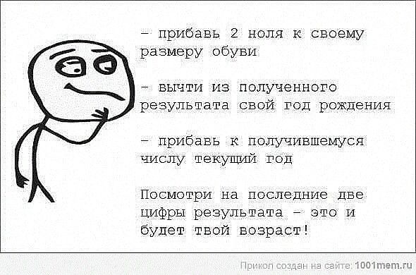 :eek: камрад,вы реально вычисляли по этой чудной формуле свой возраст?этжшутка, с просторов инета.