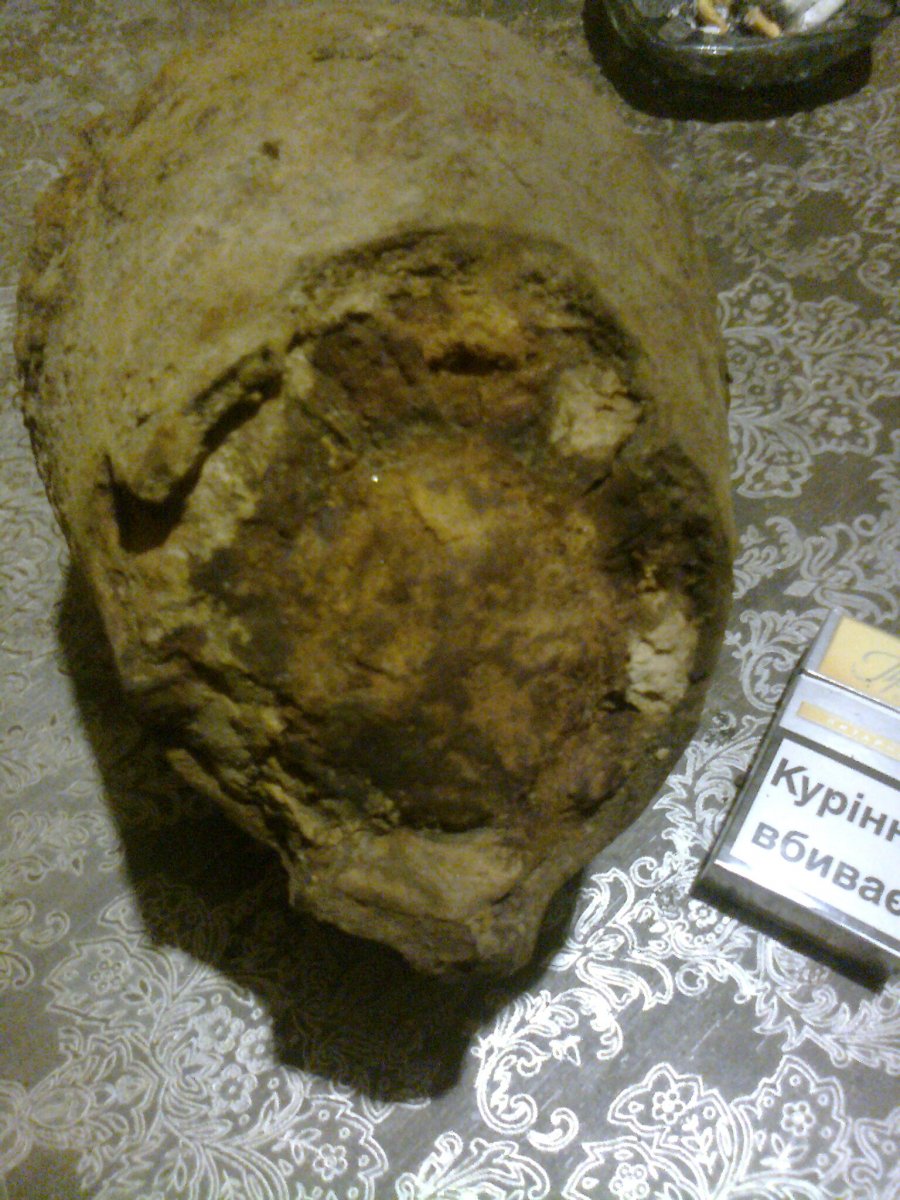 Конечно не оно. Остатки немецкой авиабомбы по ПМВ это..Либо 10, либо 20 кг. Обе вписываются в "Навскидку 18-20 см".