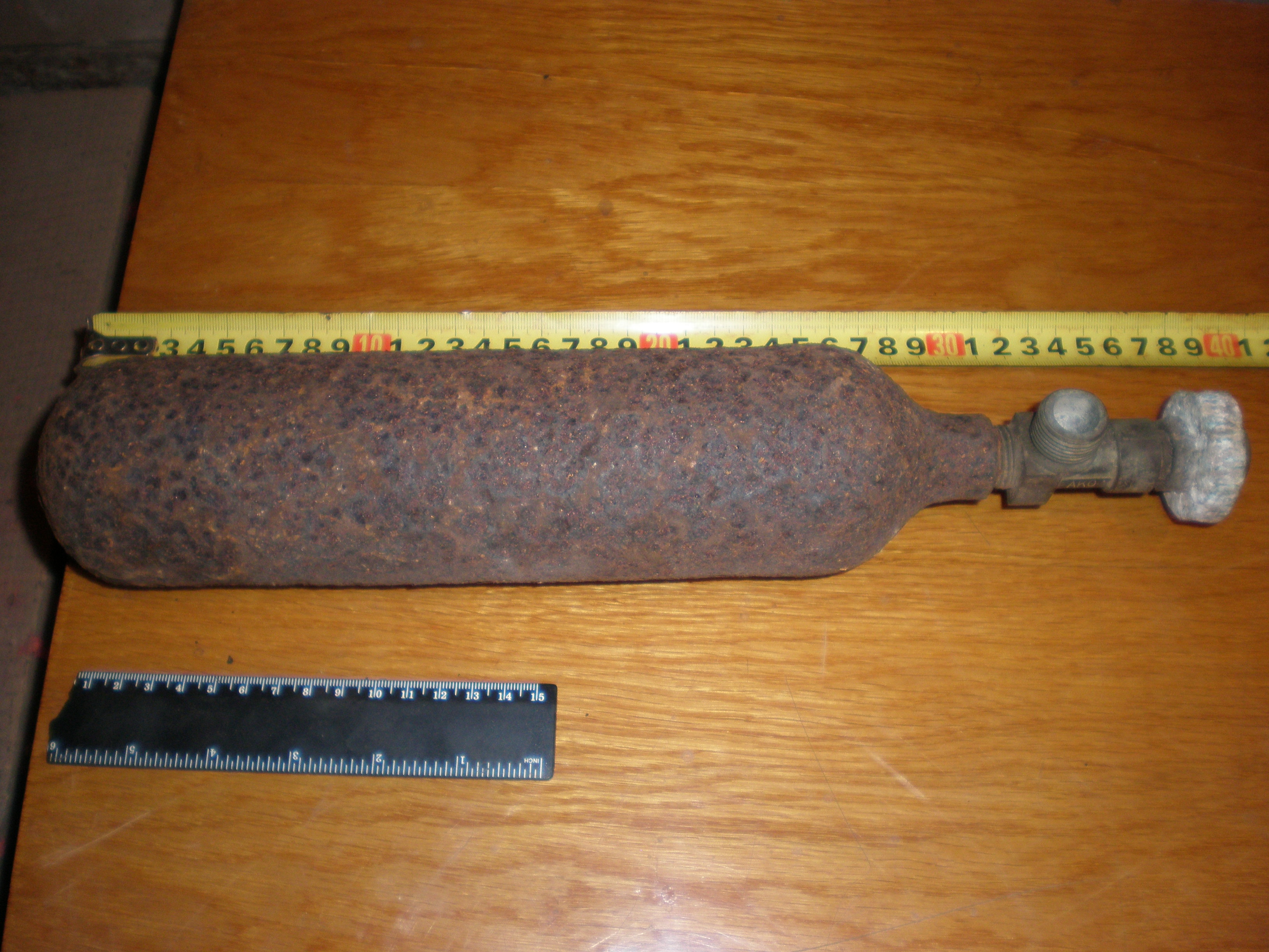 Вітаю,шановні панове Експерти! При копі по ДСВ трапився ось такий балон високого тиску,від чого він,особисто у мене версій тільки дві - або ранцевий вогнемет або "пневмостартер" від літака,а Ви що скажете? Заздалегідь вдячний за кожну конструктивну думку та обгрунтовану версію.