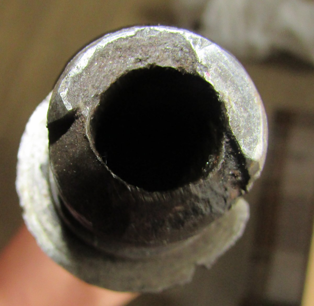Допоможіть! Від чого ствол. Був вкручений в раму від мосінки, але сидів погано, дуже вільно, мабуть не той крок різьби. Калібр ніби 7.62 х 54. Є сліди криворукого підгону під мосінський затвор. В середині видно винт. Довжина 61 см. Можливо вкорочений, не знаю.