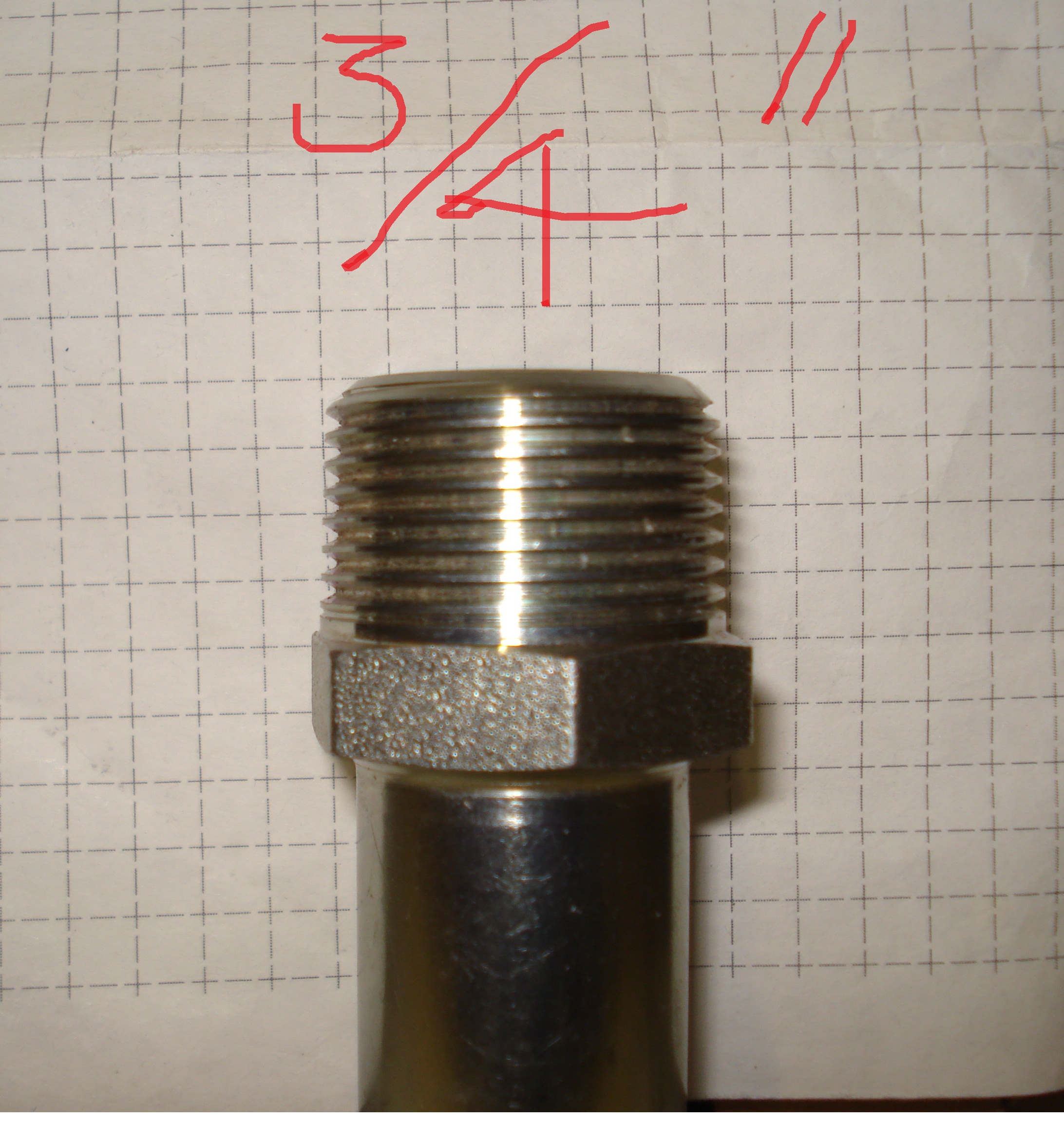 ...ну, то ВІЗМИ ТА ПОМІРЯЙ ! ...трУбна різьба 3/4 дюйма має (ТАМ) по зовнішньому діаметру 26 мм ( 1,04 дюйми - тобто "бІльше дюйма") ...що (мАйже) відповідає спецiальный МЕТРИЧНІЙ різьбі 26Х1,0...