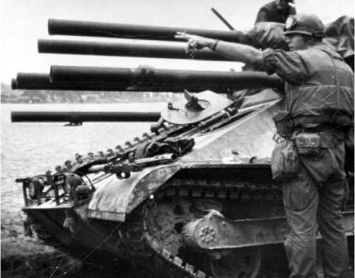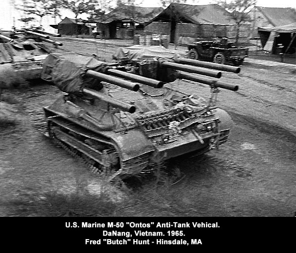 Еще по танковой теме: американская самоходка М50 Ontos во Вьетнаме. Этот "шушпанцер" спроектировали в начале 50-х для вооружения частей морской пехоты и воздушно-десантных сил. Вооружение: шесть безоткатных орудий М40А1С, четыре 12,7-мм и один 7,62-мм пулемёт. Во Вьетнаме самоходка неплохо себя показала, малый вес позволял двигаться по болотистым почвам, а безоткатные орудия эффективно поражали здания и защитные сооружения.