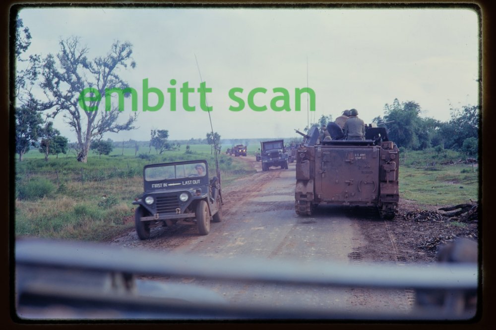 U.S. Army M48 Patton tank in Vietnam, Oct. 1968 U.S. Army M42 Duster in Vietnam, Nov. 1968 U.S. Army M551 Sheridan tank on fire, in Vietnam, Feb. 1969 U.S. Army M113 armored personnel carrier named "Satans Chariot", in Vietnam, Feb. 1969 U.S. Army tanker trucks and other vehicles, in Vietnam, Oct. 1968 U.S. Navy PBRs (Patrol Boat River) in Vietnam, Feb. 1969 U.S. Army mechanic at work, in Vietnam, Oct. 1968 National Police Field Force officers at a ceremony, Mar. 1969 South Vietnam Navy river boat, Oct. 1968 ARVN soldiers and American advisor, Oct. 1968