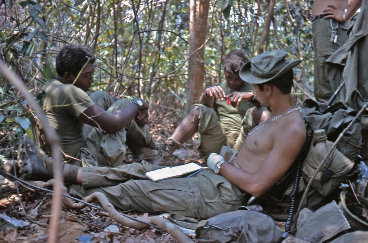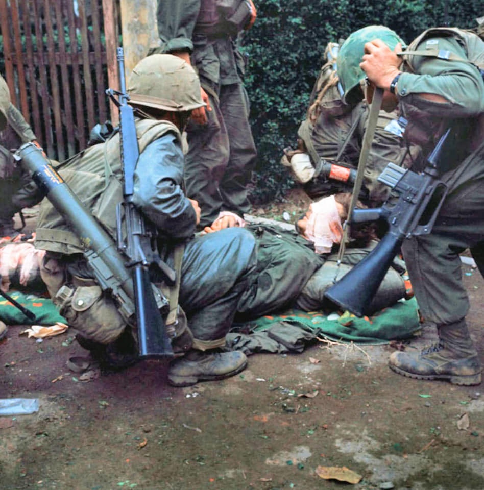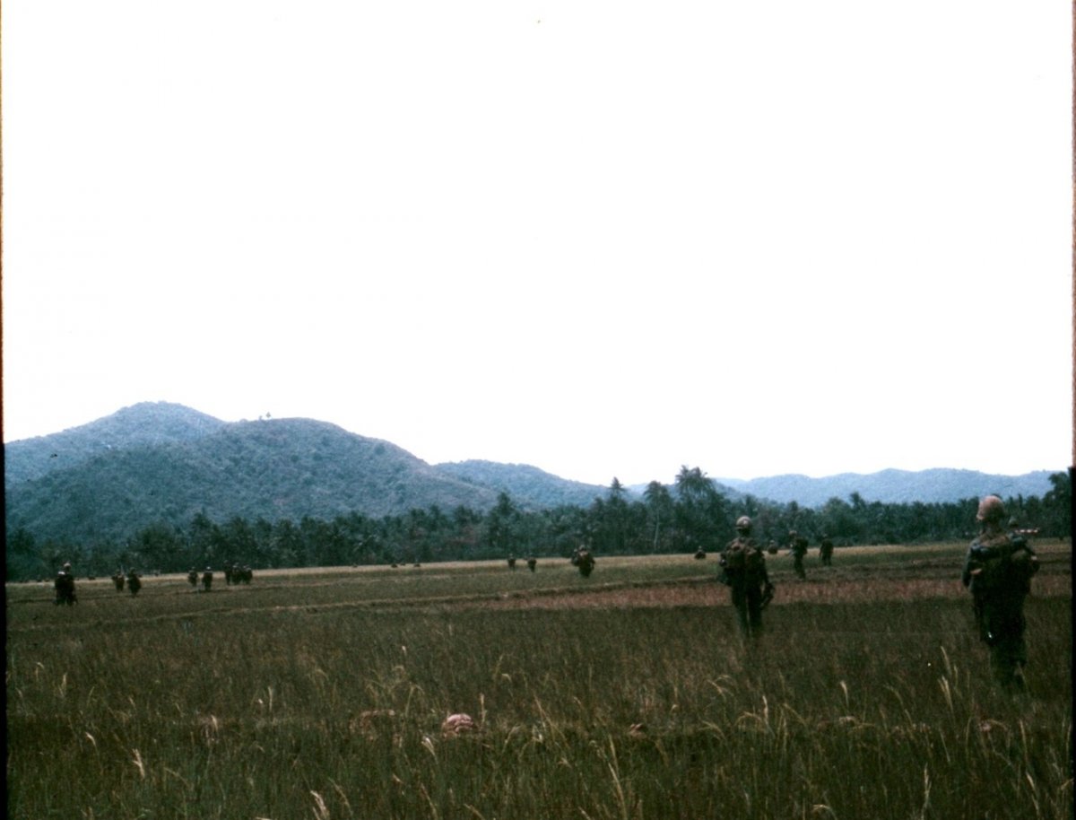 Бойцы роты "Delta" 3/21-й пехотной 196-й легкой пехотной бригады во время своего тура в 1971-72 гг. В апреле 1972 года 196-я перебралась в Дананг, чтобы помогать в обеспечении безопасности порта, и авиабазы. Бригада покинула Вьетнам 29 июня 1972 года в качестве последней боевой бригады, оставшейся во Вьетнаме. 196-я базировалась во Вьетнаме с 15 июля 1966 года по 29 июня 1972 года. 1188 погибших и 5 591 раненых.