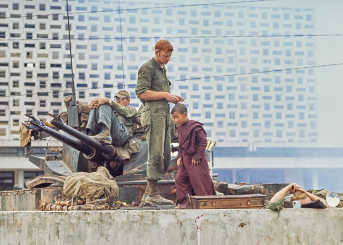 1. Бойцы 1-й пехотной дивизии армии США. Операция "Джанкшн-Сити". 1967г. 2. Морские пехотинцы во время осады Кхесани. 1968г. 3. Бойцы 1-й Кавалерийской дивизии армии США во время операции "Тайер II". Провинция Куинён. 17 января 1967г. 4. Бойцы 4-й пехотной дивизии армии США во время боя за городок Дак То. 1968г. 5. Морские пехотинцы во время боев в Хюэ. 1968г. 6. Маленький буддийский монах и экипаж "Дастера" на фоне университета Хюэ. 9 февраля 1968 г. 7. Бойцы 101-й воздушно-десантной дивизии армии США на высоте 282. 1968г. 8. Эвакуация раненого бойца 173-й воздушно-десантной бригады армии США. 1965г. 9. Бойцы 9-й пехотной дивизии США перед вылетом на операцию. 1970г. 10. Морские пехотинцы ведут огонь из M2. Кхесань. 1968г.