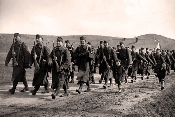 Доброго ! Словацька піхота ,озброєна польскими маузерами (наступали на Львів червень 1941,озброєння: Польскі трофеї 1939 р.).З повагою.
