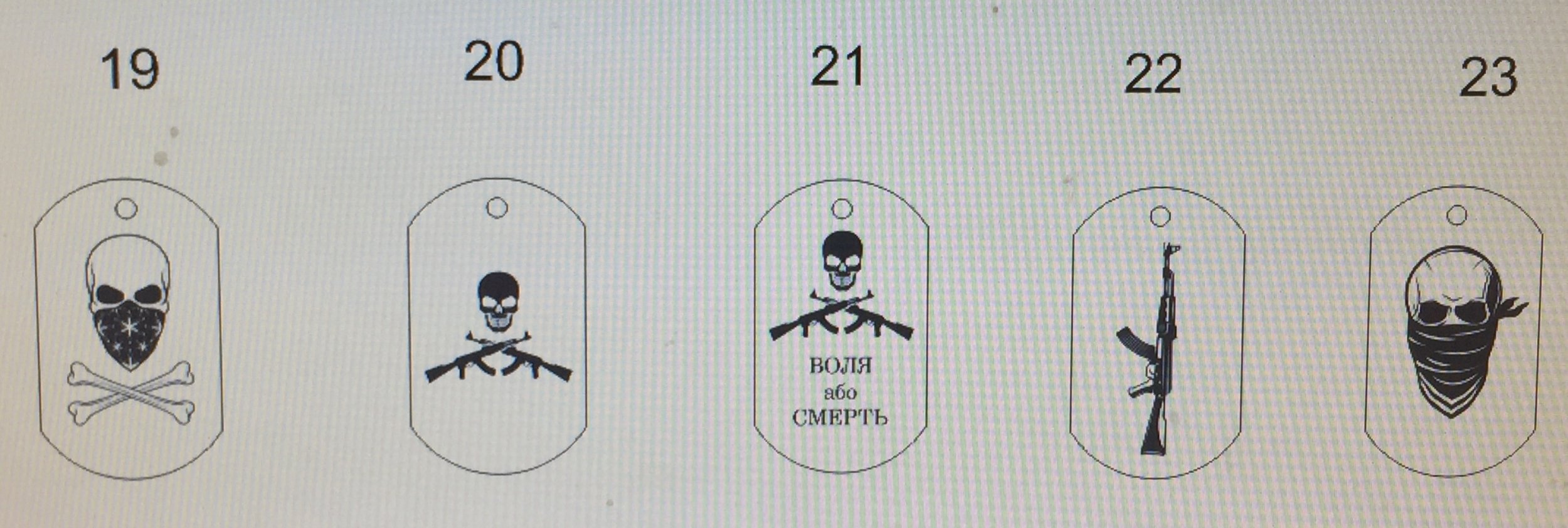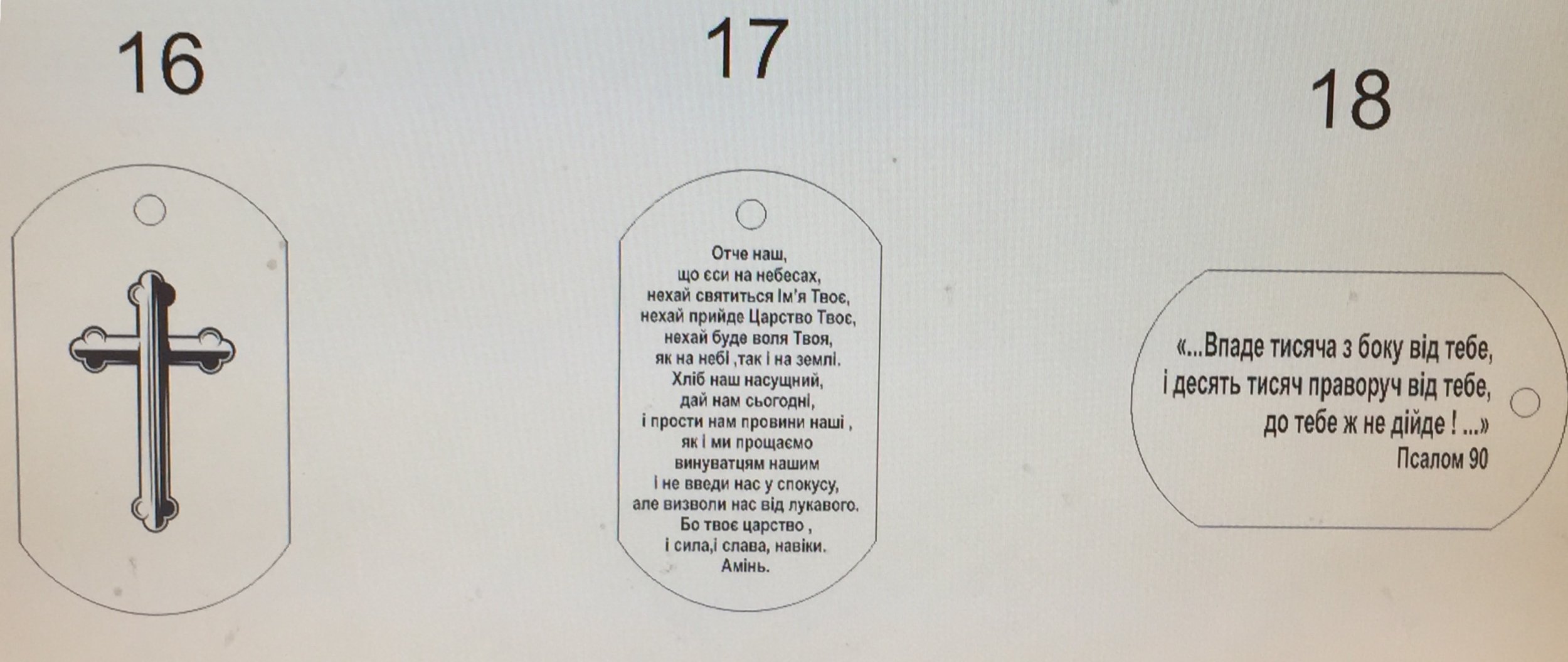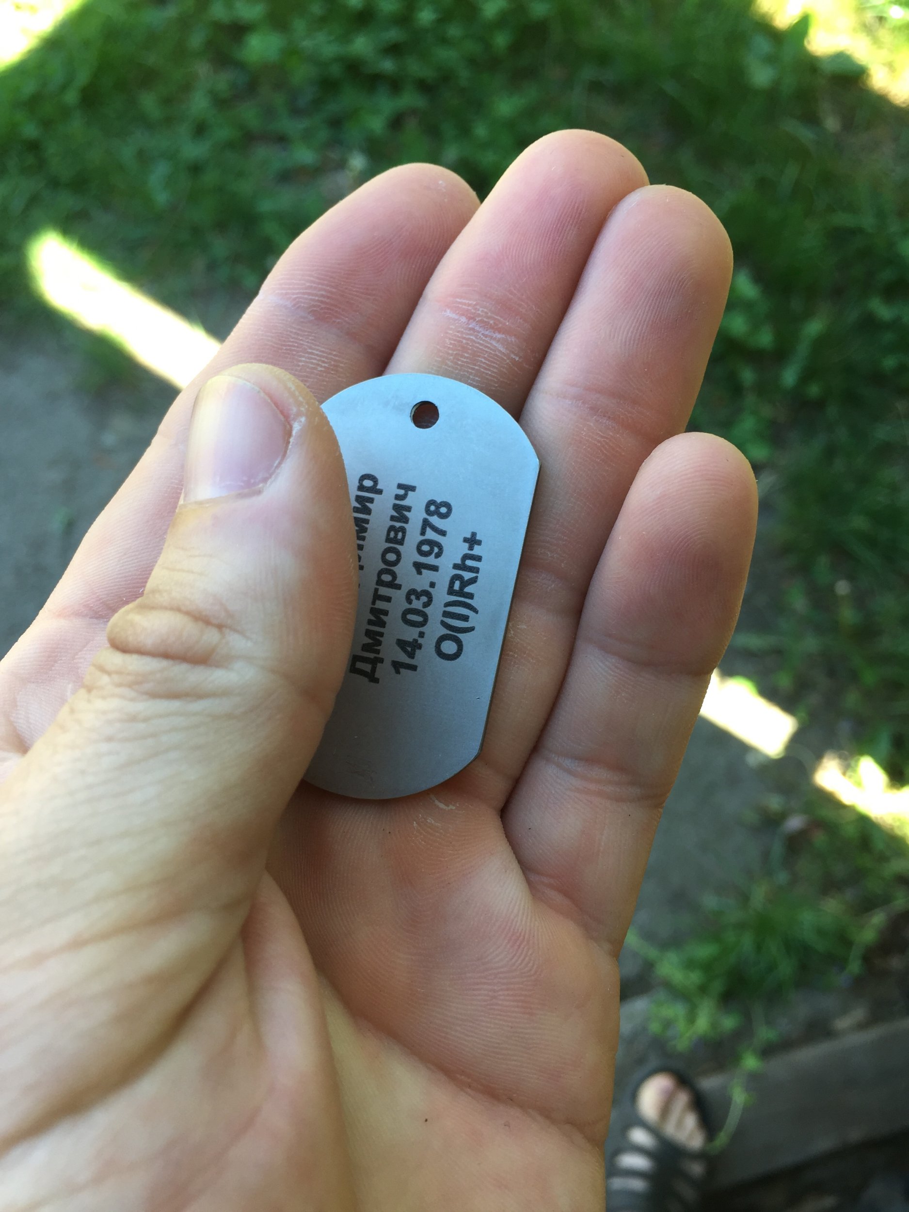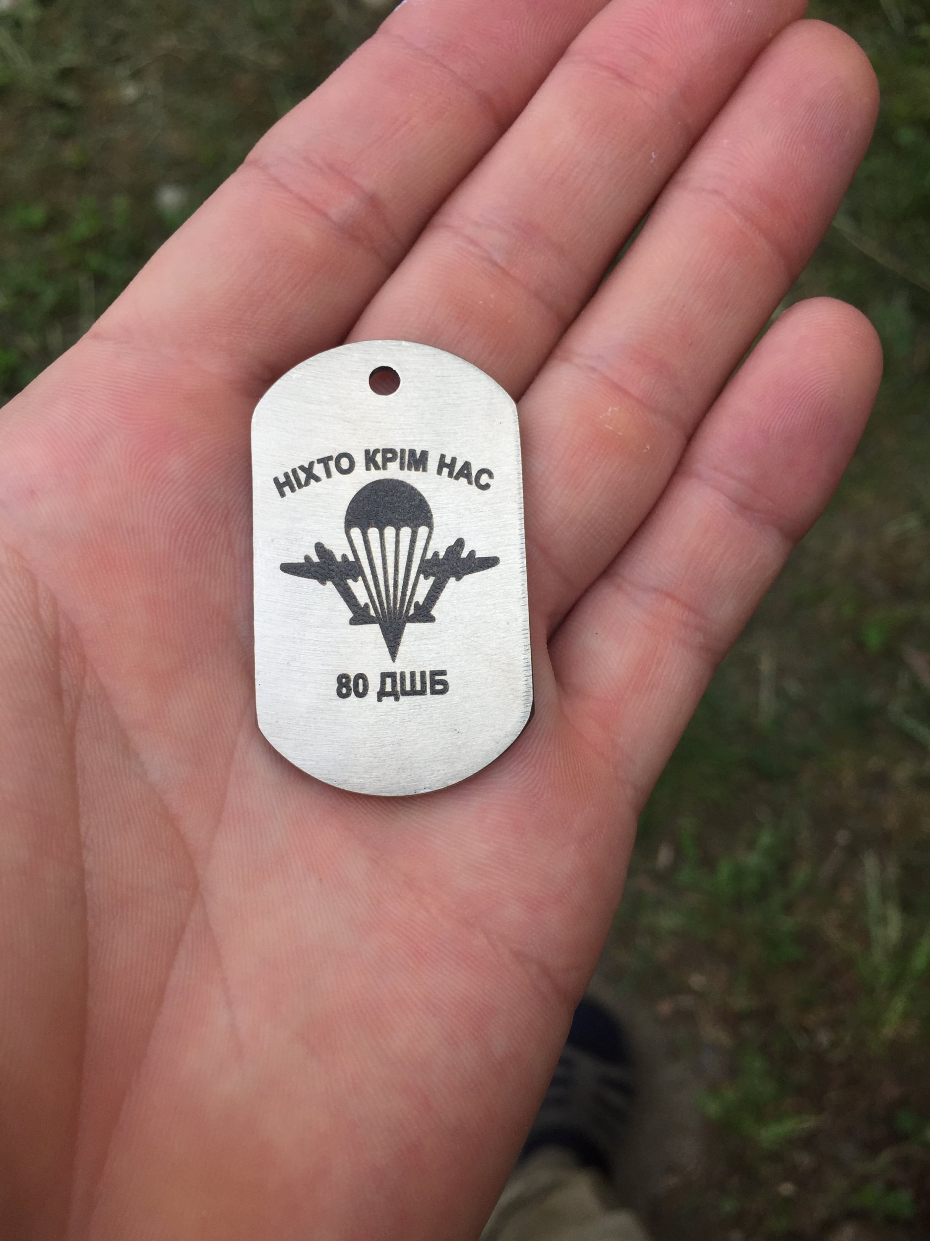 Слава Україні ! Жетони з гравіровкою. Жетон нержавійка,46*27*1.5 мм. Шарікова цепочка 2 мм.Довжина 70 см. Гравіровка з обох сторін(глибина відчутна ). Стророна А малюнок на вибір по номеру. Сторона Б ваші дані(на фото зразок). Відправка новою поштою, оплата на картку,після готовності. Ціна 150 грн.З повагою Віталій.