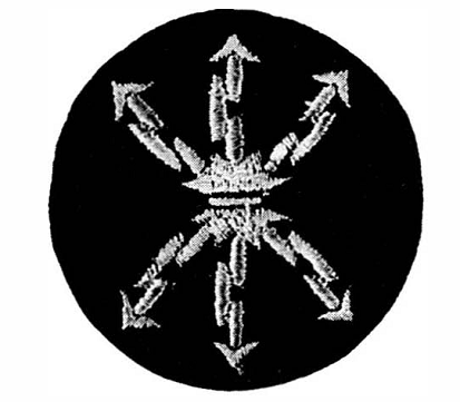 Я так понимаю это лопасть винта самолета. Молнии думаю понятно. Может эмблема какой нибуть истрибительной эскадрильи. Но в авиации я совершенно ничего не смыслю. Хотя деды воевали в ВОВ именно в этом роду войск. Один старшиной технической службы был ( в последствии майором) второй подполковником бомбандировщиком СБ.