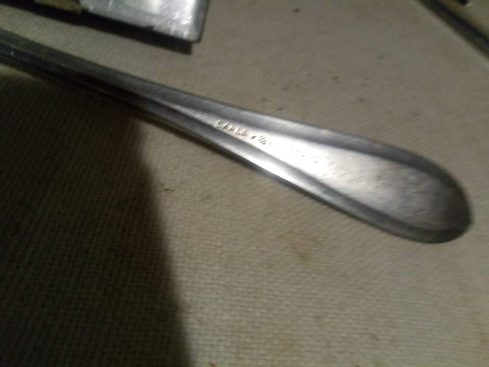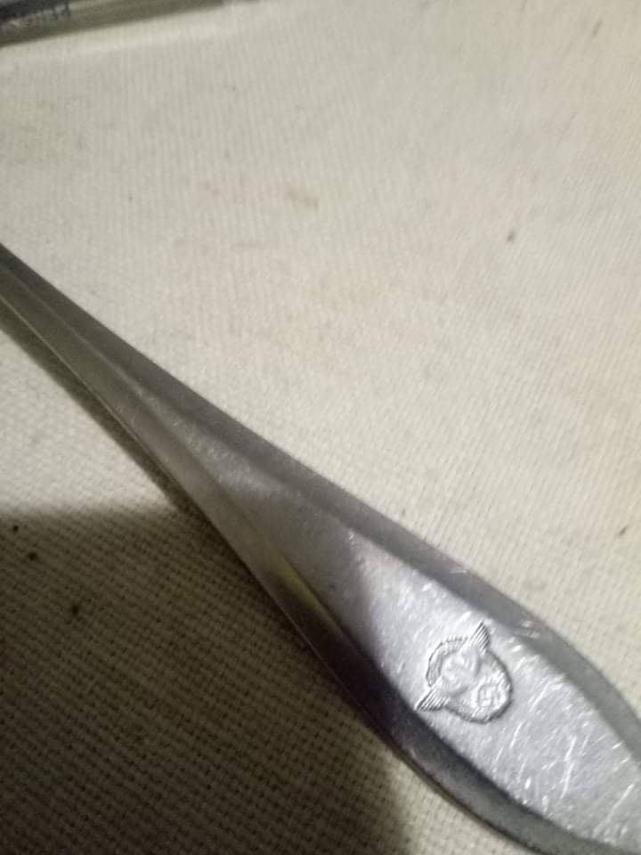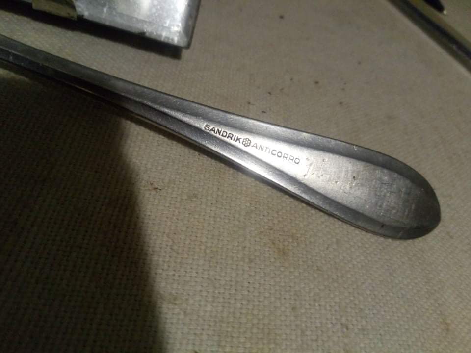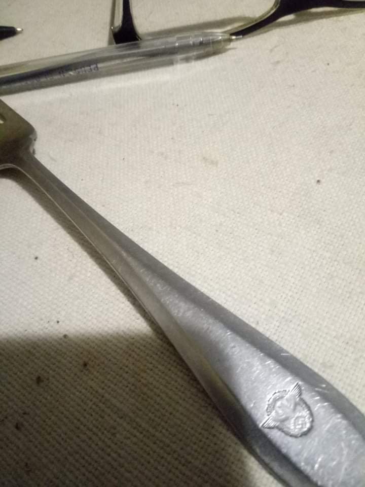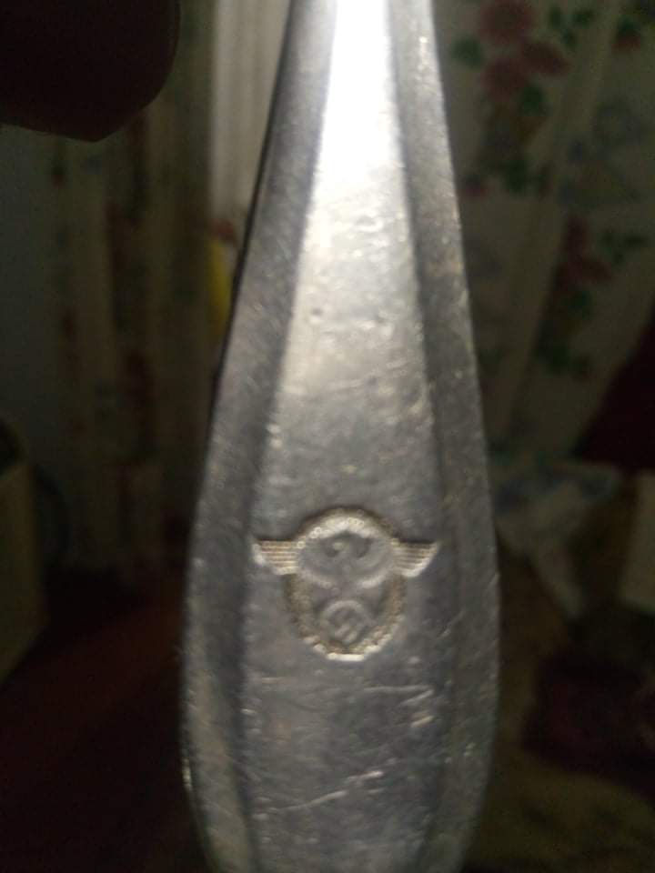 Приветствую! Нержавейка? Тогда правильная вилка, от чехословацкой компании, в войну работавшей на Рейх. Мелькало уже такое: https://forum.ww2.ru/index.php?showtopic=158632 http://archive.violity.com/vilka-iii-rejh-policiya-sandrik-anticorro-28672616 https://guns.allzip.org/topic/288/1458871.html и даже так: https://reibert.info/lots/stolovaja-vilka-policii-sandrik-anticorro.327673/ https://reibert.info/threads/vilka-stolovaja-proizvoditel-sandrik-anticorro.504247/ Поищите больше по ключевым словам "sandrik anticorro"