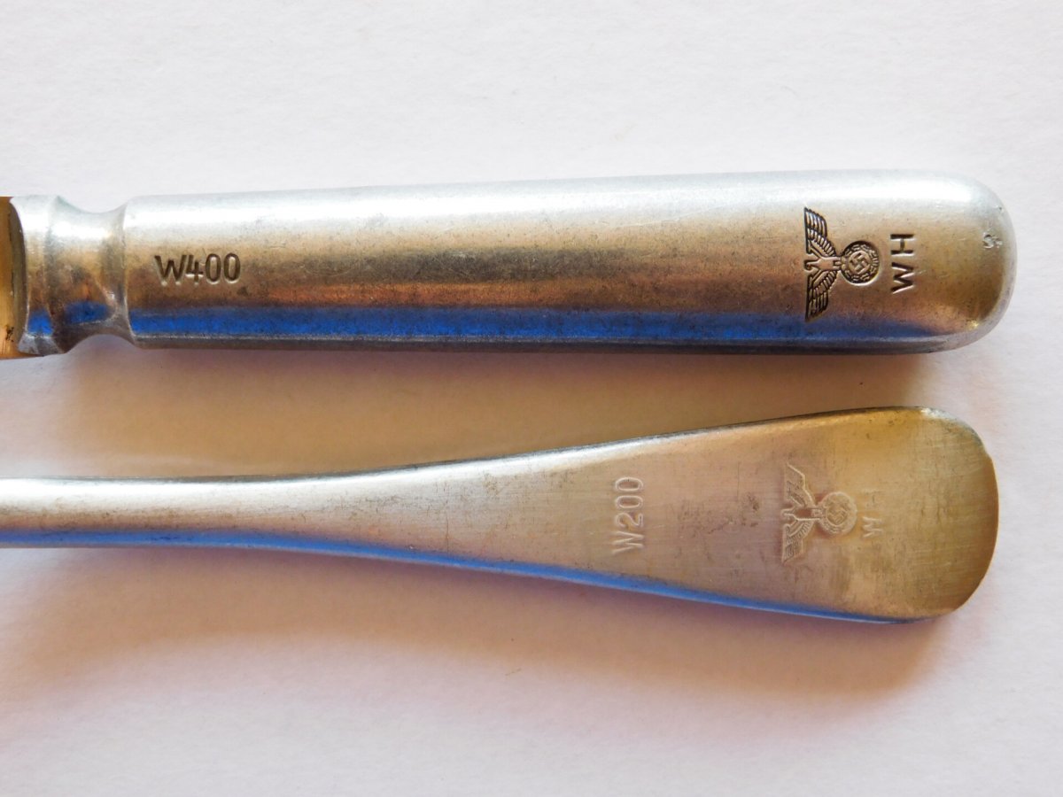 В сети попадаются и другие "необычные" клейма, например, W400, и тоже с расшифровкой не очень получается, не дают информацию, пробовал искать на разных языках: https://www.msmilitaria.com/product/1607351/wehrmacht-cutlery