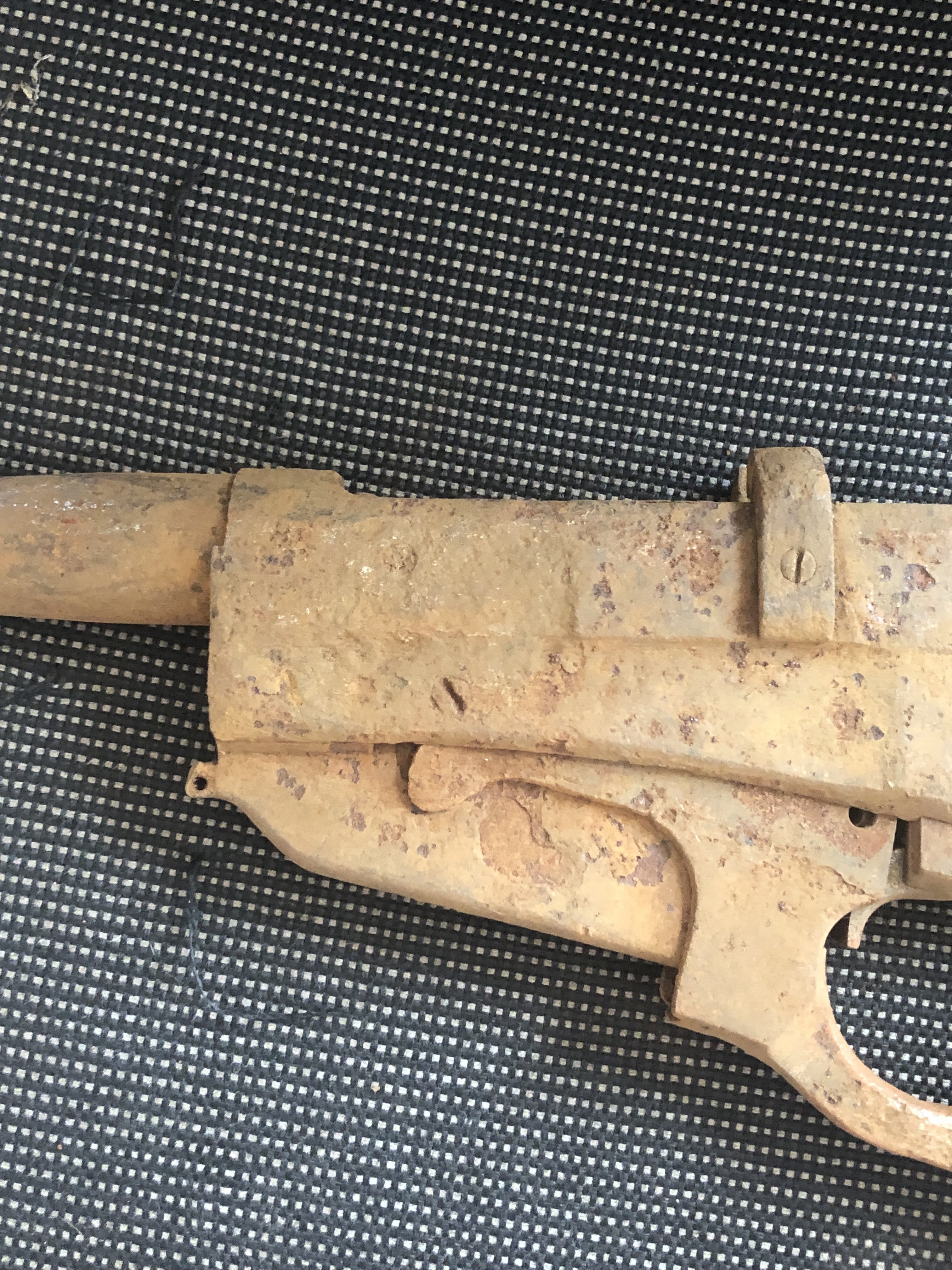 Приветствую. Обрез винтовки системы Винчестера модели 1895 года, т.н. "русский заказ". Выставлять на аукцион со старта в 1500 грн. Сделайте фото обреза ствола и крупно зазора приоткрытого затвора.