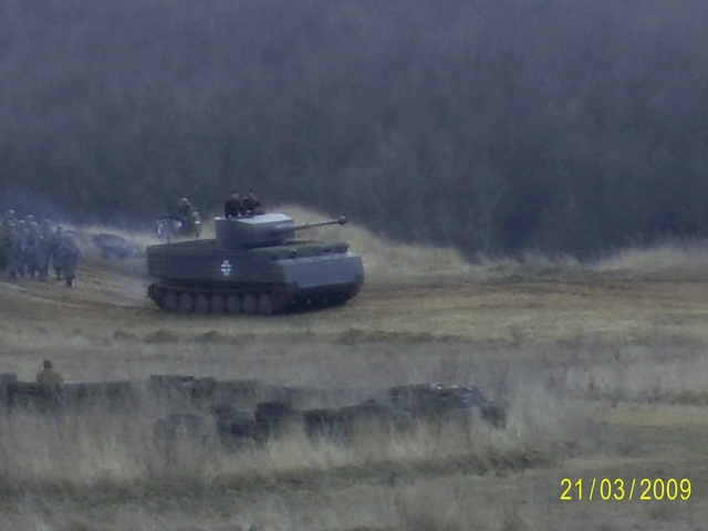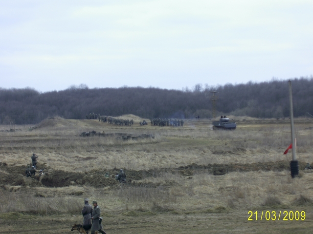 Re: Винница и обл. Вот самоходка на первом плане. Солдаты занимают свои места в окопах. После пролетел самолет, сбросил пару бомб на немецкие позиции и советские воины пошли в атаку... Земля в огне, столбы дыма, разрывы "снарядов" и немцы прижимаются к земле, подожгли самоходку.... и пошла атака на окопы