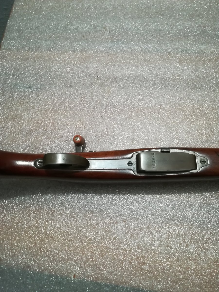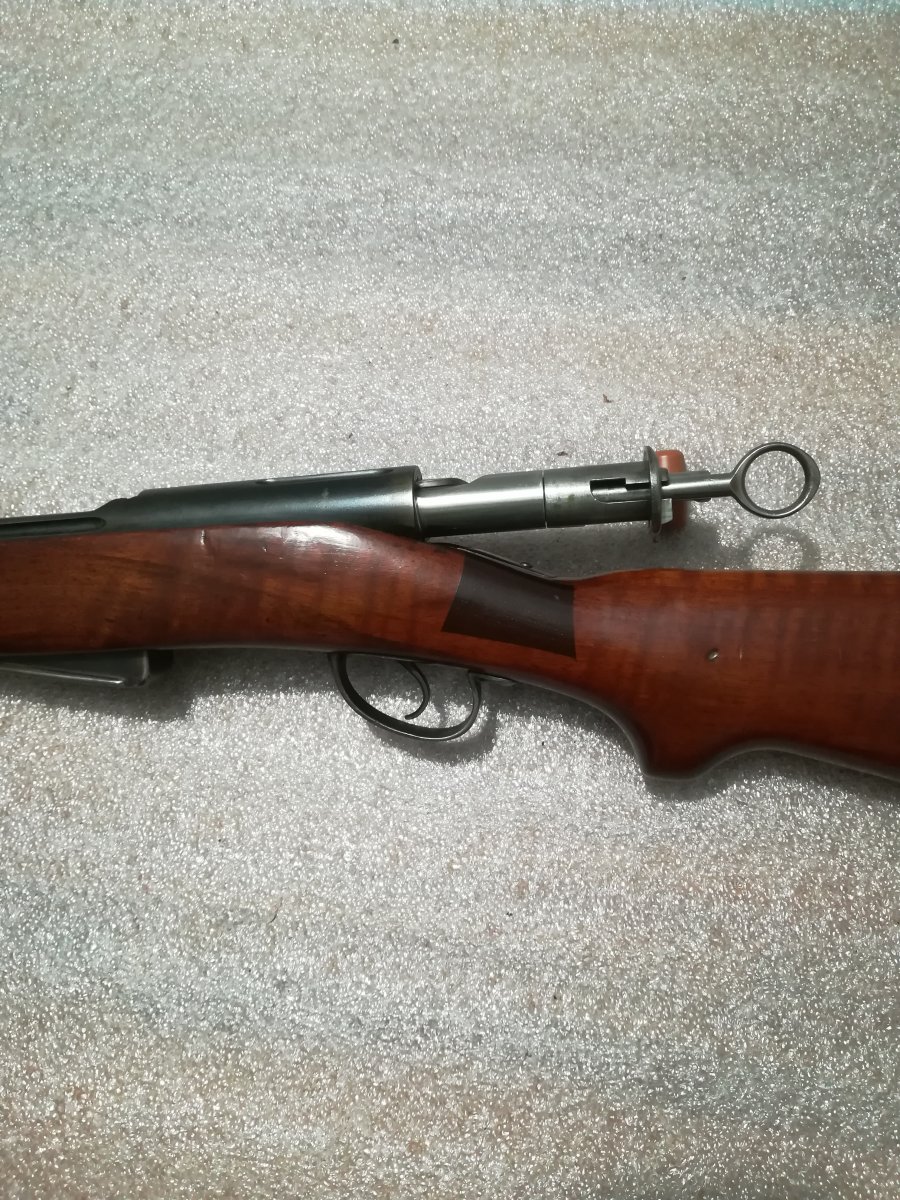 Приветствую. Прошу помощи в оценке швейцарской винтовки Первой и Второй мировых войн, обр. 1889г. Калибр 7.5 мм Дальность стрельбы до 2000м. Винтовка в очень хорошем состоянии. Дерево отшлифовано и пролачено так, что итальянская мебель просто отдыхает.Функциональность затвора поражает, можно играться часами. Из деактива заварен патронник , срезано зеркало затвора. Документов нет.