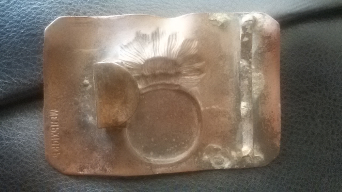 Всем здравия желаю! Камрады выскочила пряжка РИФ мельхиор, гнутая. Вопрос, греть в костре можно, для того, чтоб ровнять7