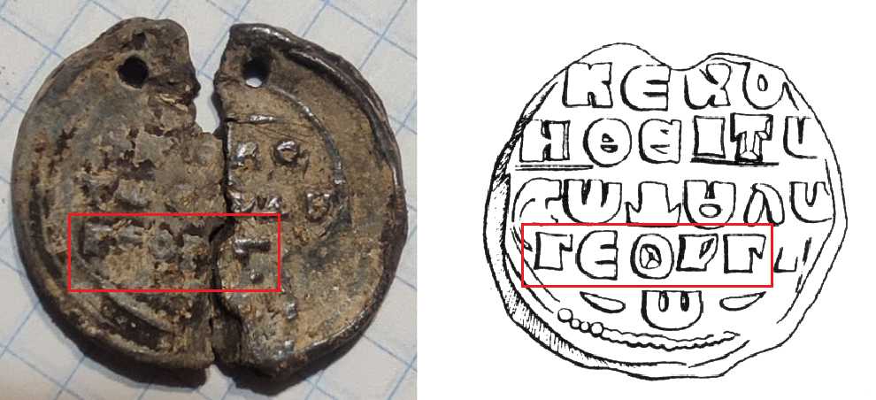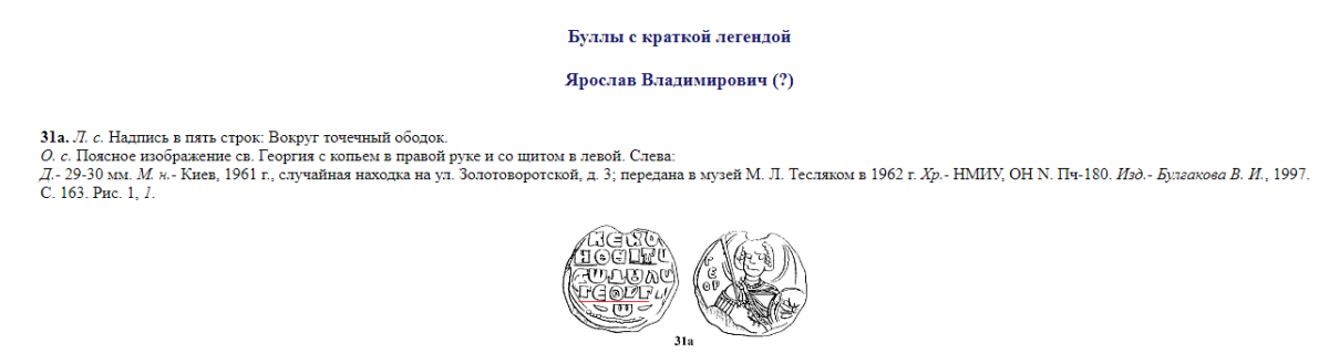 вітаю. печать з фото ТС схоже на княжеську печать з грецькими написами рядками. на першому фото св.Геогрій слово Георгій читається на іншій стороні можна провести схожість з буллою Ярослава Володимировича (?) http://www.siegel.ru/book/kngr.html