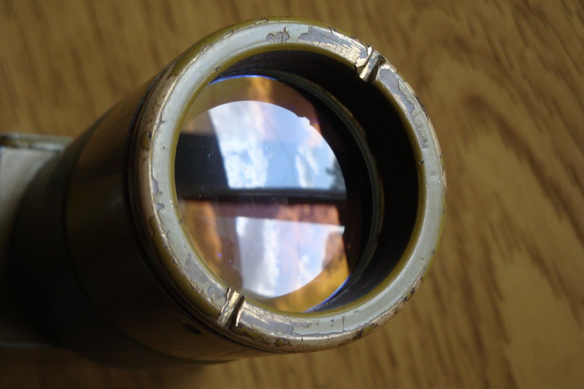 Визир с восьмикратным увеличением, изображение прямое - как в монокле, бинокле. Сетки нет. В рабочем состоянии, оптика с просветлением. Можно использовать для изготовления лёгкого перископа или так пользоваться. Внутри призма с крышей (для компактности), на фото с обратной стороны ( на просвет) видна её вершина в виде полосы, как и у биноклей с подобной конструкцией, при наблюдении через окуляр она не видна. Цена гр.