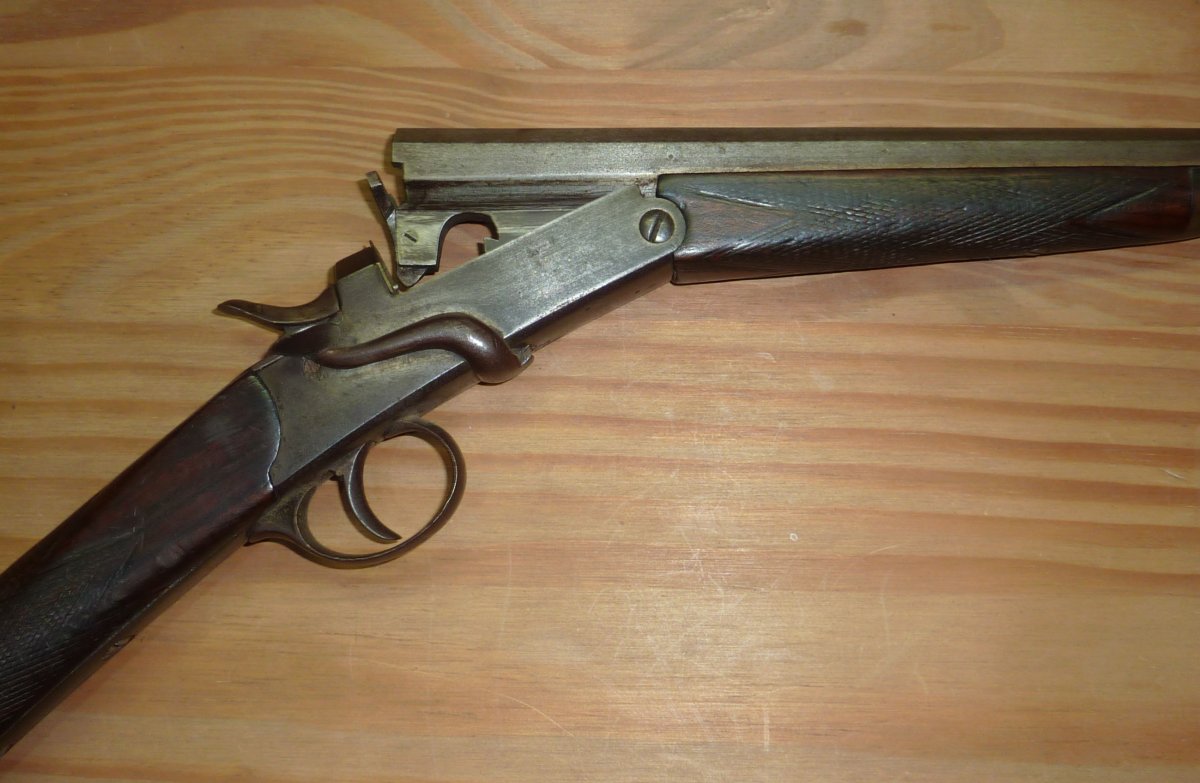Останки некомплектной колодки одноствольного охотружья малого калибра. Калибр, навскидку, 32 или 36. Примерный возраст железки 100-120 лет. В молодости выглядело вот так: