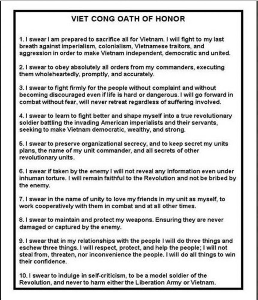 Есть, например, такой любопытный образец "Клятвы вьетконговца"