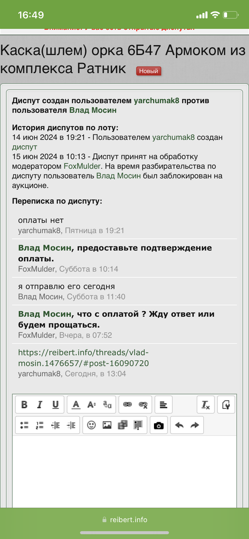 Последнее сообщение в переписке, в диспуте также не поступало сообщения об оплате. Получается… звиздабол