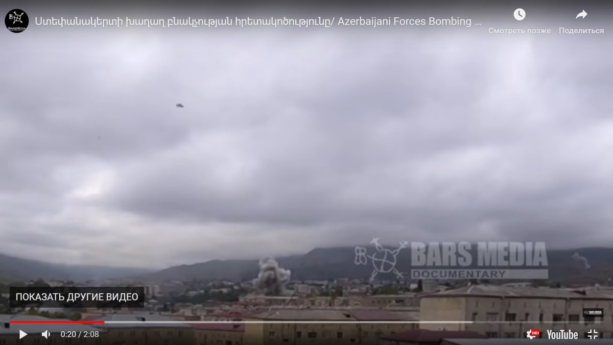 Обстрел Степанакерта. На 20 сек. видно,чем его лупасят. Кто определит ?