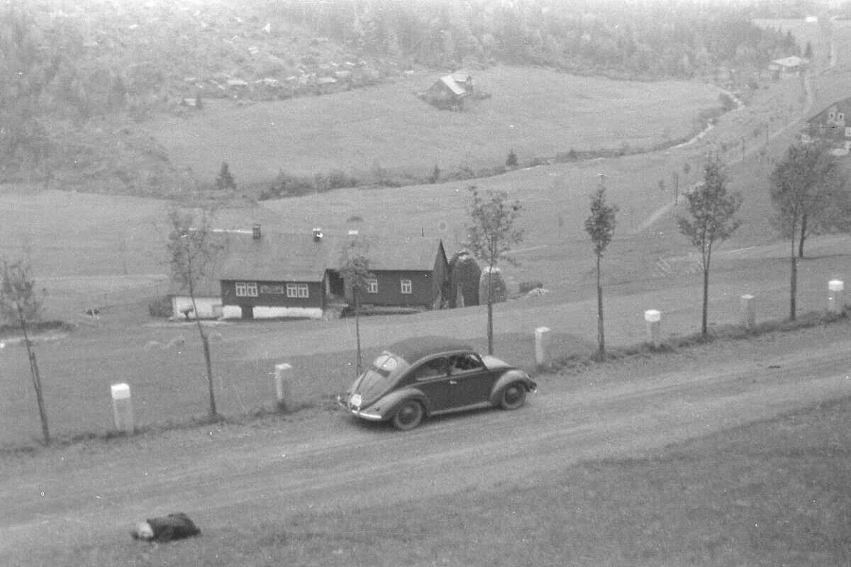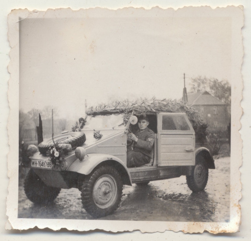 После войны была сделана попытка дать VW82 вторую жизнь.В рамках конкурса на внедорожник для Бундесвера, объявленного в 1953 году, фирма Porsche начала выпуск своих образцов.Но в большую серию они не пошли из-за высокой стоимости.С 1954 по 1958 годы был построен 71 автомобиль под обозначением Porsche 597.На фото - третья и последняя версия этой машины ( выпускалась в 1957-58 годах ) отдалённо напоминающая знаменитый VW82.Конструктивно неизменными остался двигатель воздушного охлаждения и его заднее расположение.