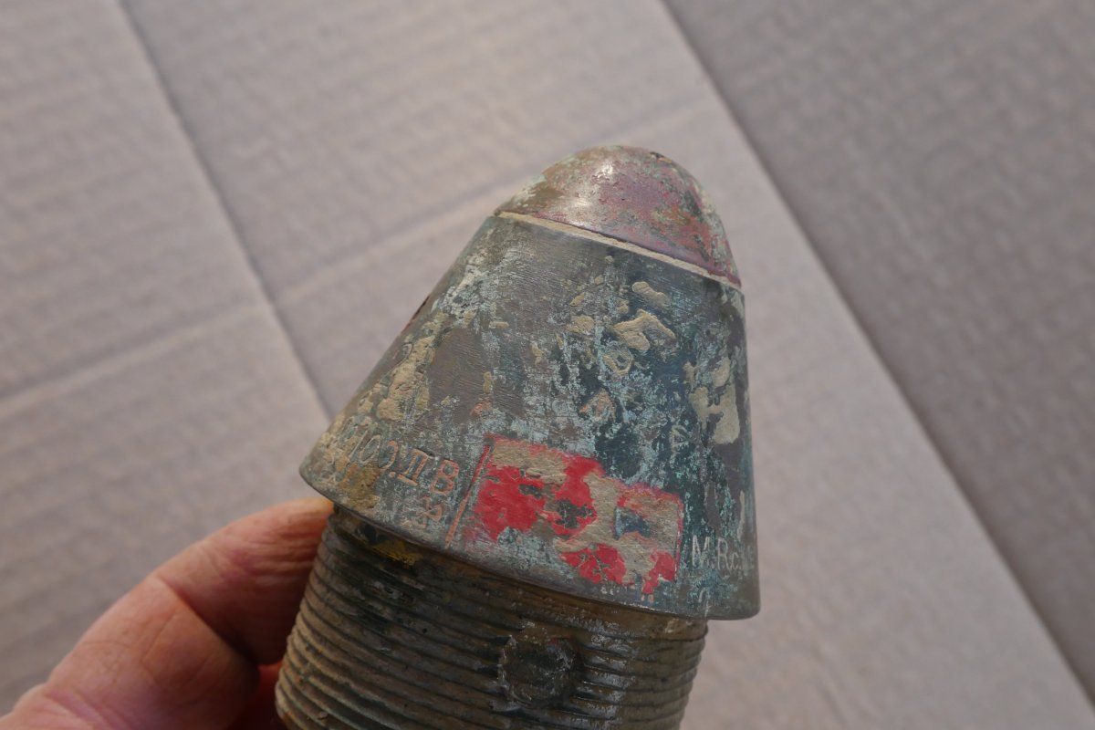 Здравствуйте. Сегодня на немецких позициях по пмв попалась такая вот штука,домой брать не стал,подскажите пожалуйста от какого снаряда и опасна она или нет,если нет, то в следующий выезд заберу,за фото извиняюсь, с телефона. Заранее спасибо ответившим.