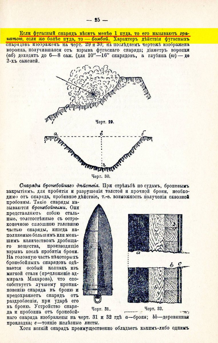 Калибр снаряда не являлся в тот период критерием деления на "гранаты" и "бомбы". См. ниже рис. 2.