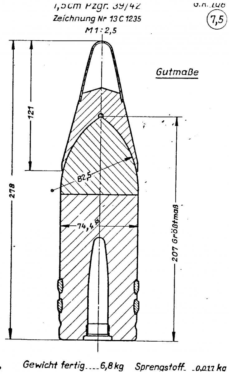 гармата "Пантери" kwk 42, бронебiйний снаряд (панцергранате) PzGr.39/42