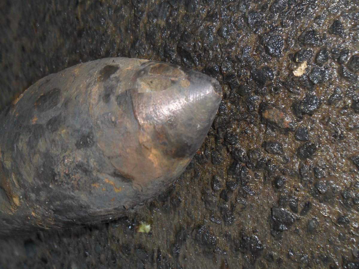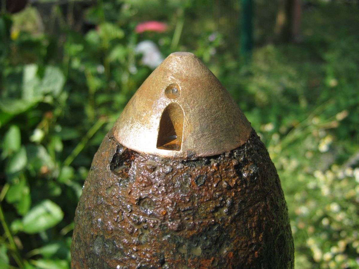 Добрый день. Мне все же видится несколько "разрежанная" нарезка на ведущем пояске. И число данных нарезов - 24 (ИМХО). Следовательно 75-мм француз! В голове ударный взрыватель SCHNEIDER. А внутри большая вероятность пикринка.