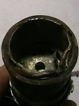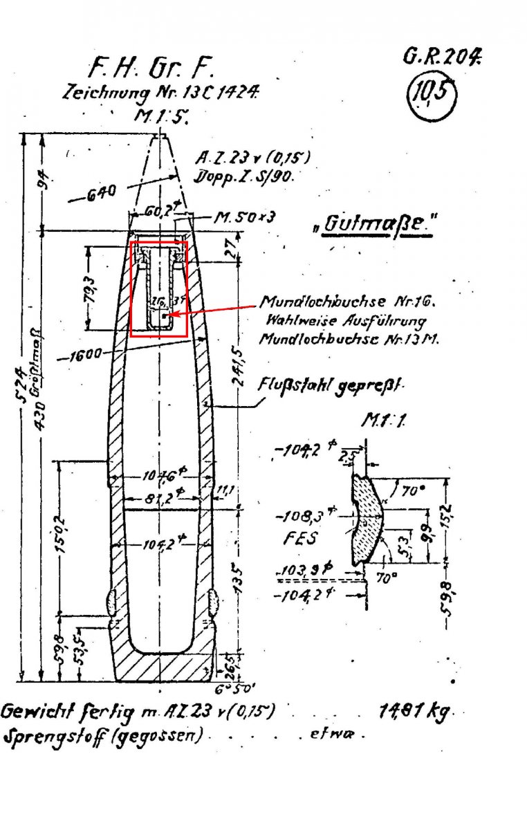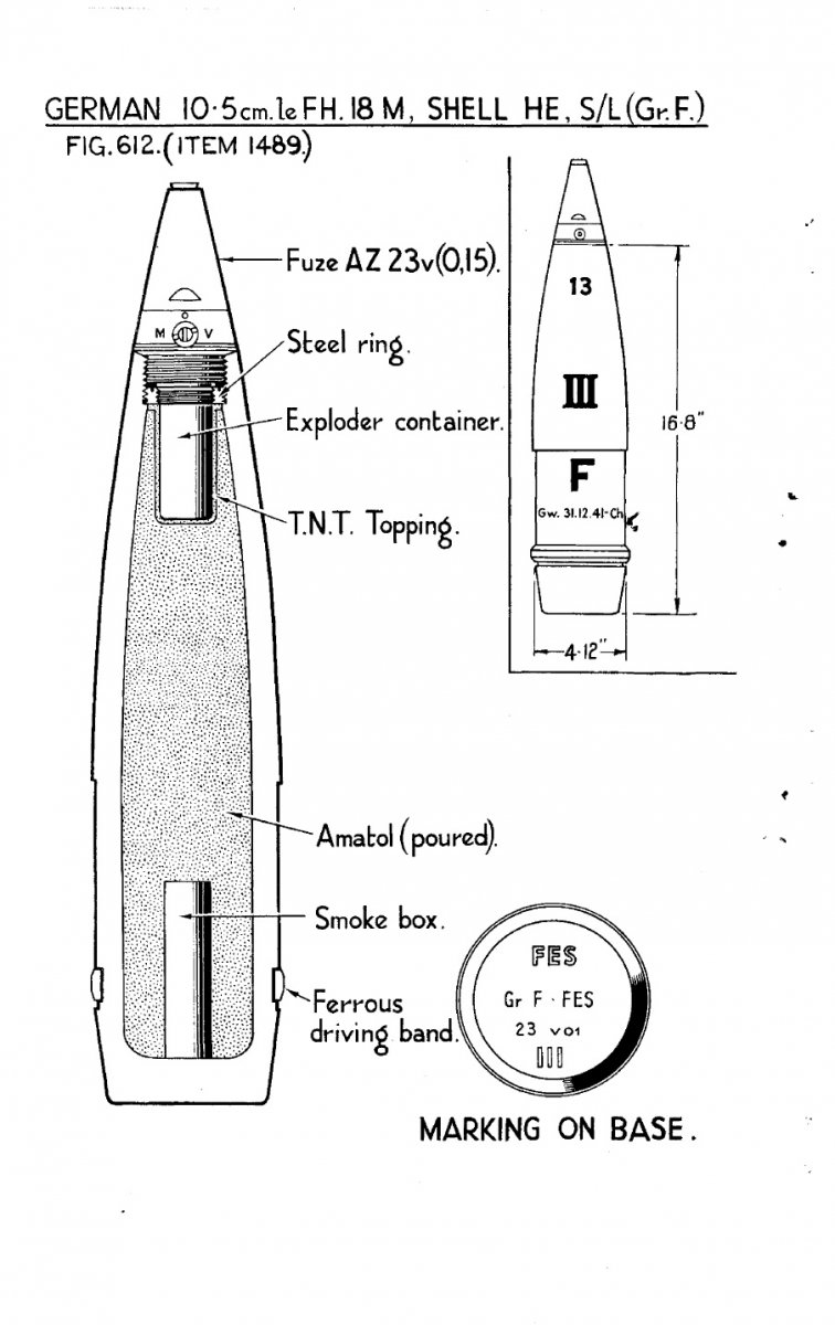 Это Т-90. Дистанционная трубка (уже отработавшая), а не взрыватель! "Раскуроченный взрывом" В-90 снизу выглядит по другому (см. фото). Его начинку хорошо видно на примере разрезного макета (желтое - это ВВ). Она....Достаточно редкий вид на фоне других 105-мм.