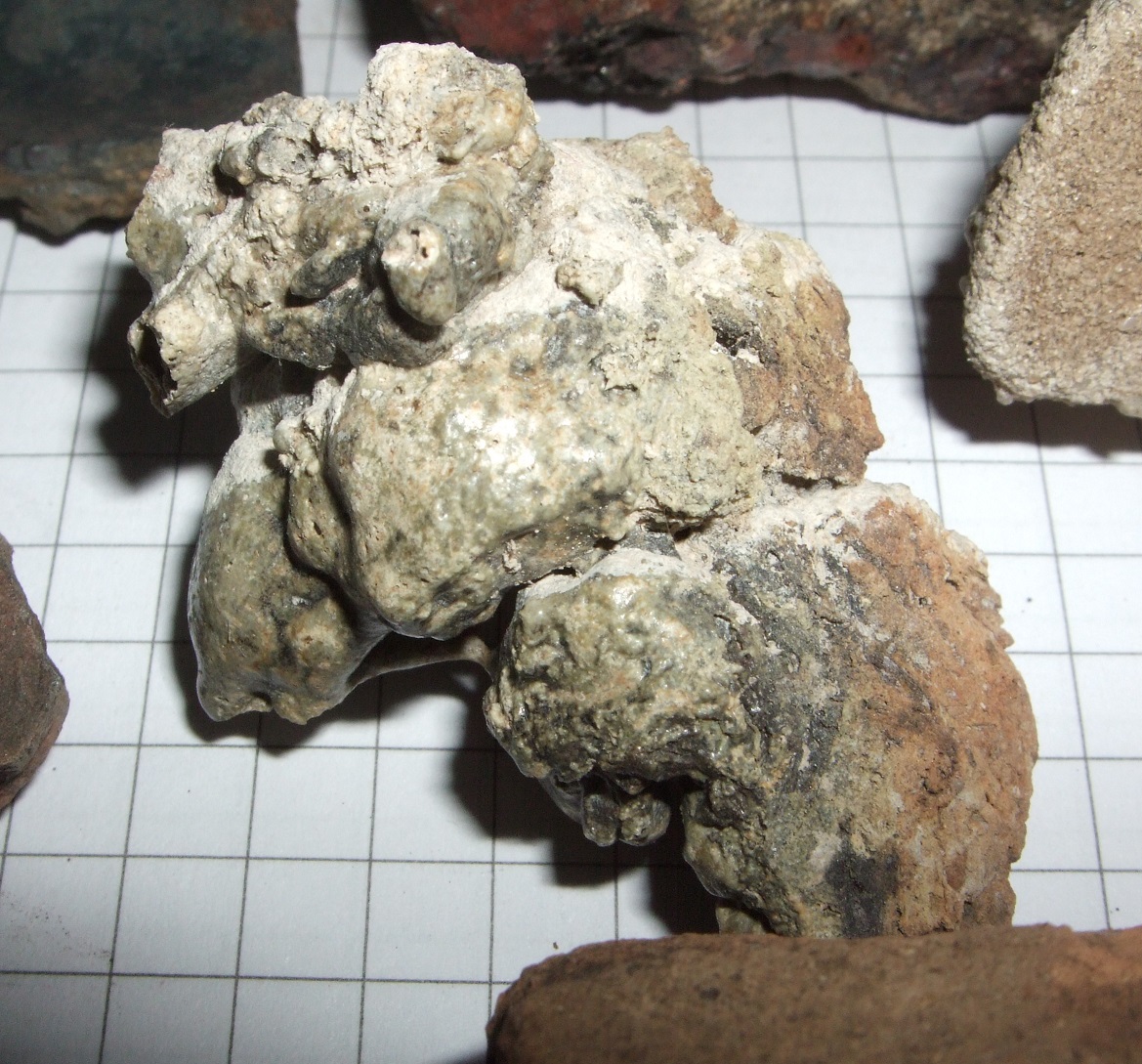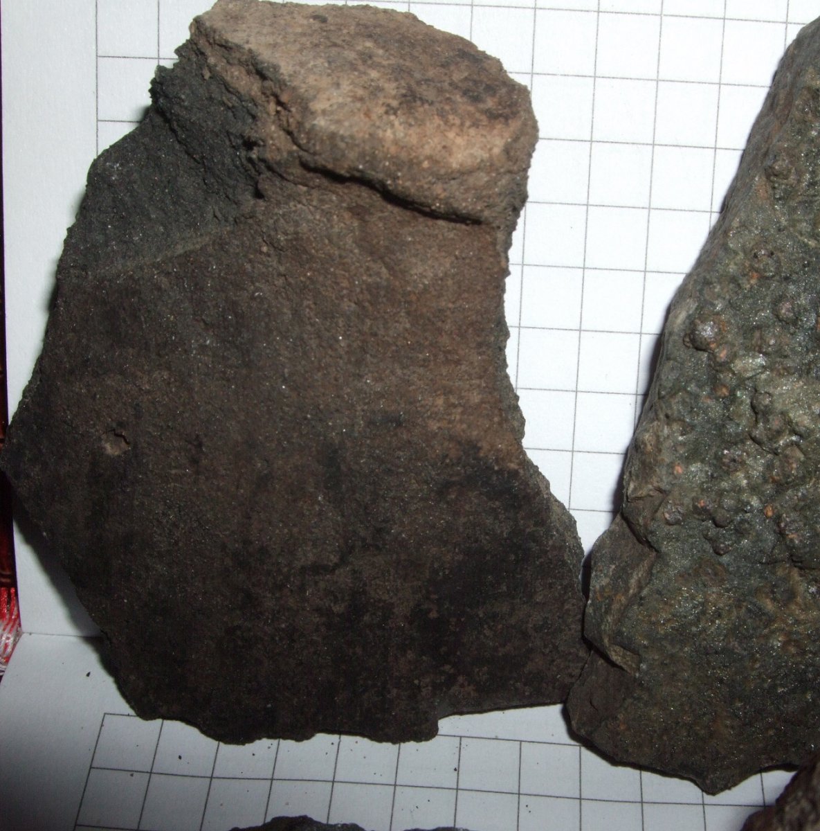 Напр. я живу рядом с поселухой славян 9 - 13 вв. Возле остатков рва, там где он выходил к реке, постоянно (практически после каждого ливня) вылезают куски шлака (видать кузня с сыродутным горном стояла за частоколом, а отходы сбрасывали за него), так вот этот шлак с огромным включением древесной золы и кусков не прогоревшего дерева, у вас этого по фото вроде бы нет.