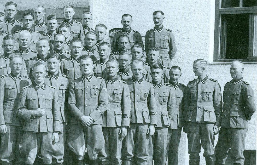 Обратив внимание на то что у некоторых солдат по две нарукавные ленты, пришел к выводу, что это все же чины юнкершафта одной из юнкерских школ (Тольц или Брауншвейг) со своим командиром (унтерштурмфюрер в центре). Фото скорее всего сделано в 1939-1940 годах.