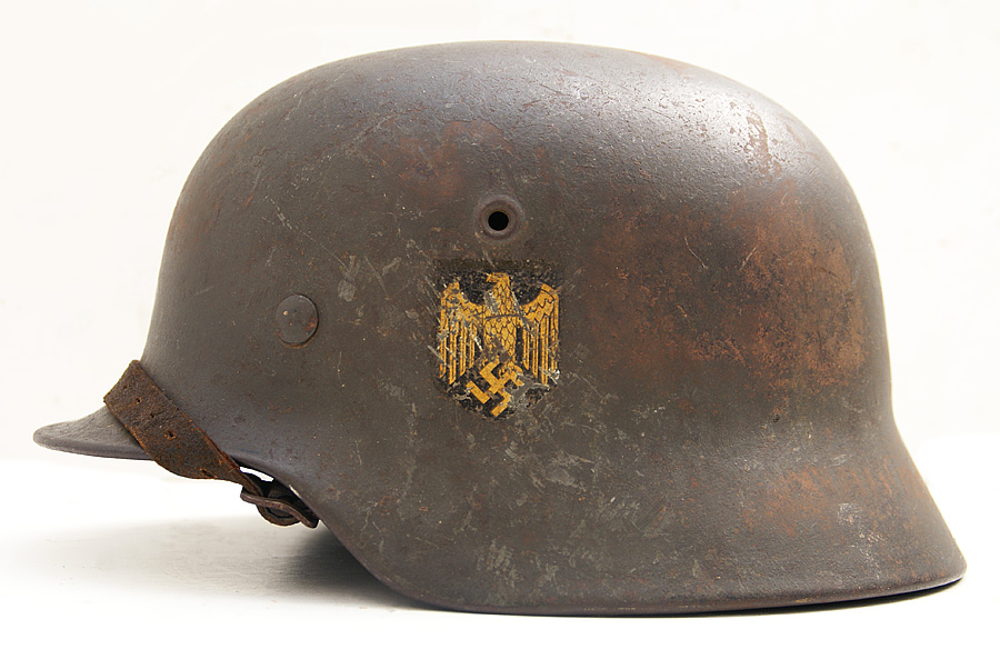 Наносили иногда сами солдаты,у вас могла просто от времени пожелтеть,у меня как то тоже на м 42 золотой орел проявился,в любом случае доказать что ваш шлем кригсмарин сложно.Нужны номера шлема, может у Сани Лемешко чтото есть в архиве.По мне так обычный вермахт.