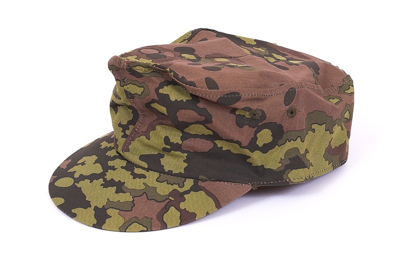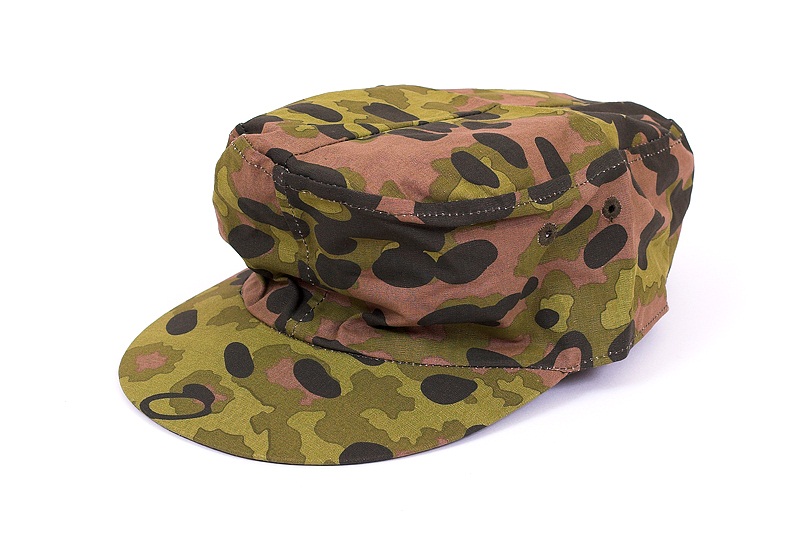 На первых трех фото - полевые упрощенные кепки WSS: 1. Waffen SS Oak A (дуб-А) Camouflage M-42 Cap; 2. Waffen SS Plane Tree 5/6 (платан-5/6) Camouflage M-42 Cap; 3. Waffen SS Blurred Edge ("стертый край") Camouflage M-42 Cap. На четвертом фото кепка Вермахта - Splinter ("осколок").