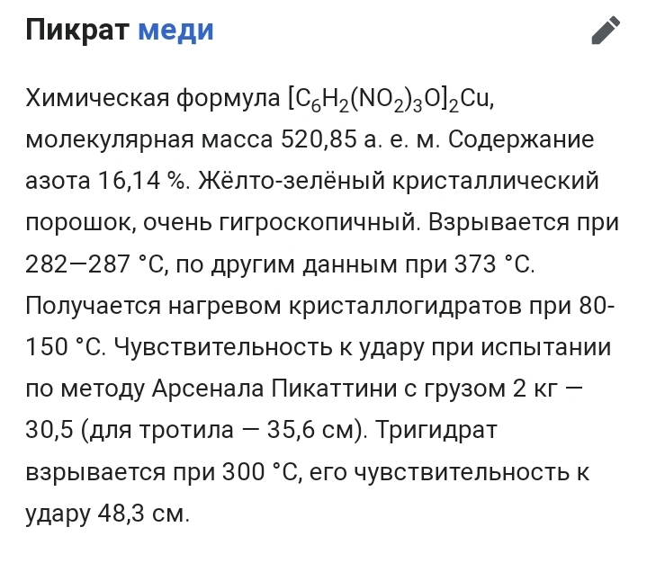 Википедию переписали , молодец , я тоже так сделал . Речь идёт о пикратах железа 3 , и точка остальные интереса не представляют . В условиях снаряда Lfh kanongranate 10.5 кстати , вот тоже окислившийся взрыватель , а вы видите пикраты?