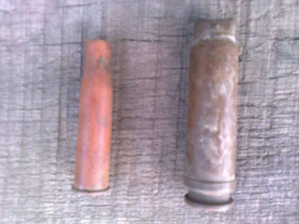 Все правильно Крот Ученый, в лесах одни банки, хотя все может быть потеряшки разные бывают. Ну это не суть, хотел обратиться за помощью по поводу опознания одной гильзы, летом у одного товарища увидел, ни кто не мог толком сказать от чего эта гильза, крупный калибр. Для сравнения слева гильза от манлихера, типичная. Есть у кого мнения по этому поводу.