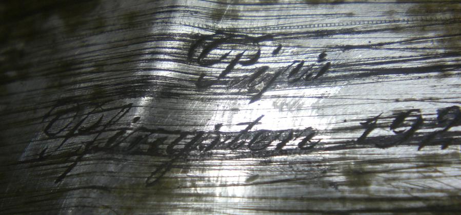 Это гравировка на портсигаре . Ну не получается у меня прочитать . Помогите , а ? Я не то чтобы безграмотен , но сам портсигар немецкий , Крафт Альпачча . А вот имя и фамилия не немецкие у меня выходят .