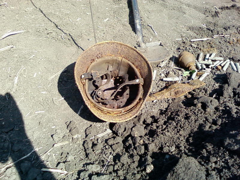 с утра заехали на один хутор ,нас хватило на полчаса.хутор завален снарядами и патронами с эрликона.поехали на старый хуторок и копнули на последок в этом году.фотик сел ,завтра еще покажу находки.